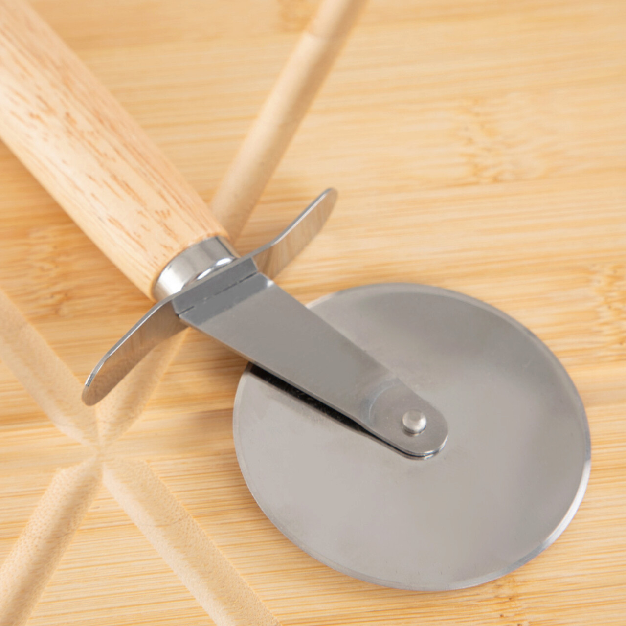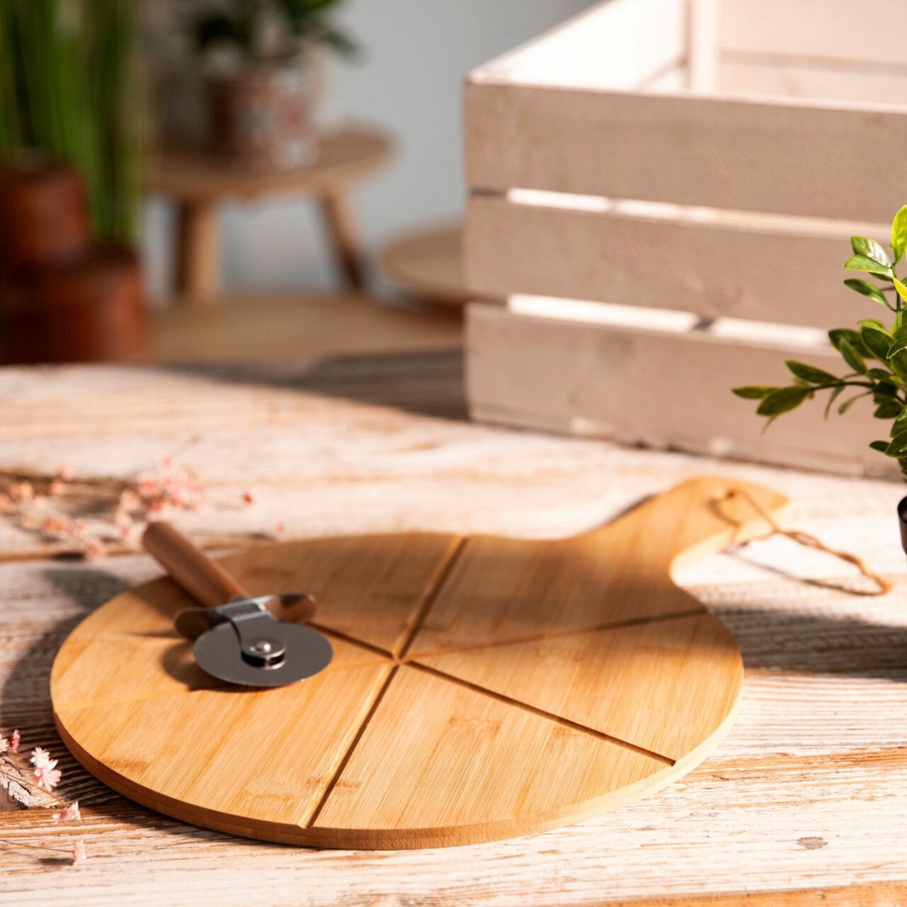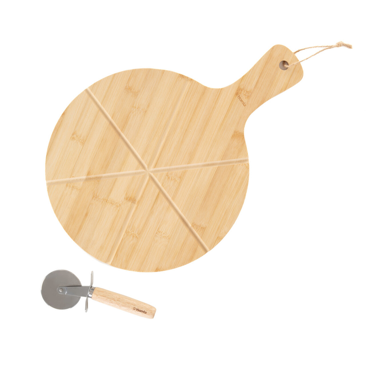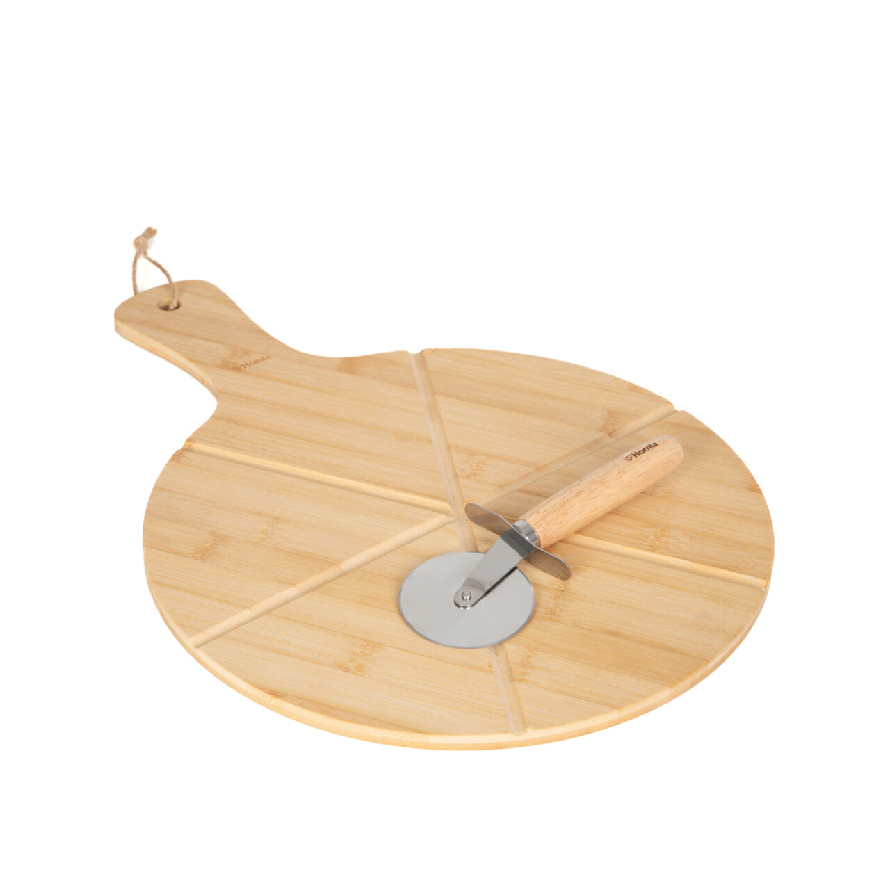 Platou pentru servire pizza si cutit Bambou, Homla, 45x32 cm, lemn, natur