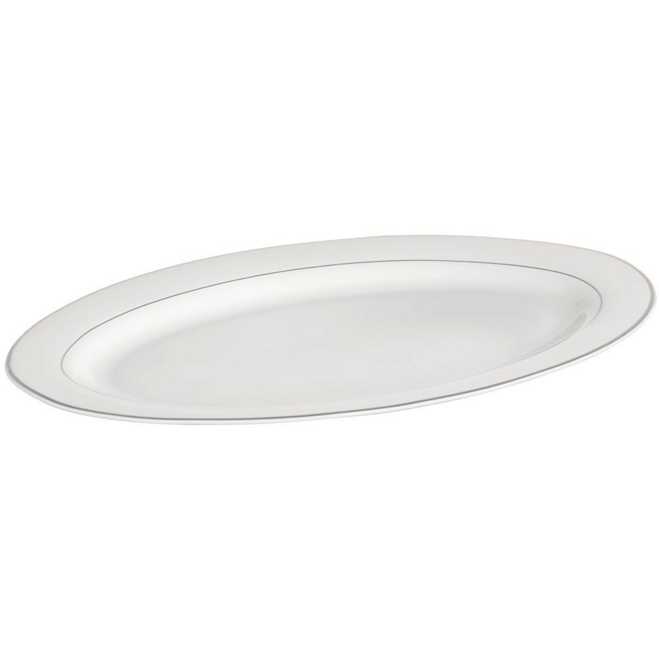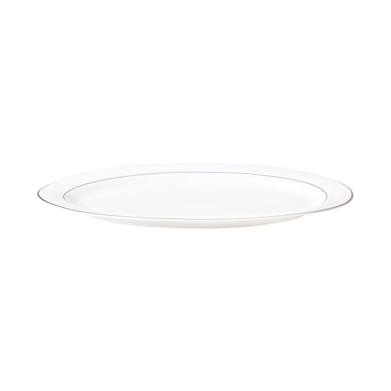 Platou servire Ambition cu diamterul de 35,5 cm. O linie de portelan exceptional de eleganta, decorata cu linii delicate de argint. Forma clasica si decoratia subtila o fac perfecta atat pentru interioarele traditionale, cat si pentru cele moderne. Portelanul New Bone China de înalta calitate, cu o nuanta alb-gri, este rezistent la rupturi si arata foarte exclusivist.