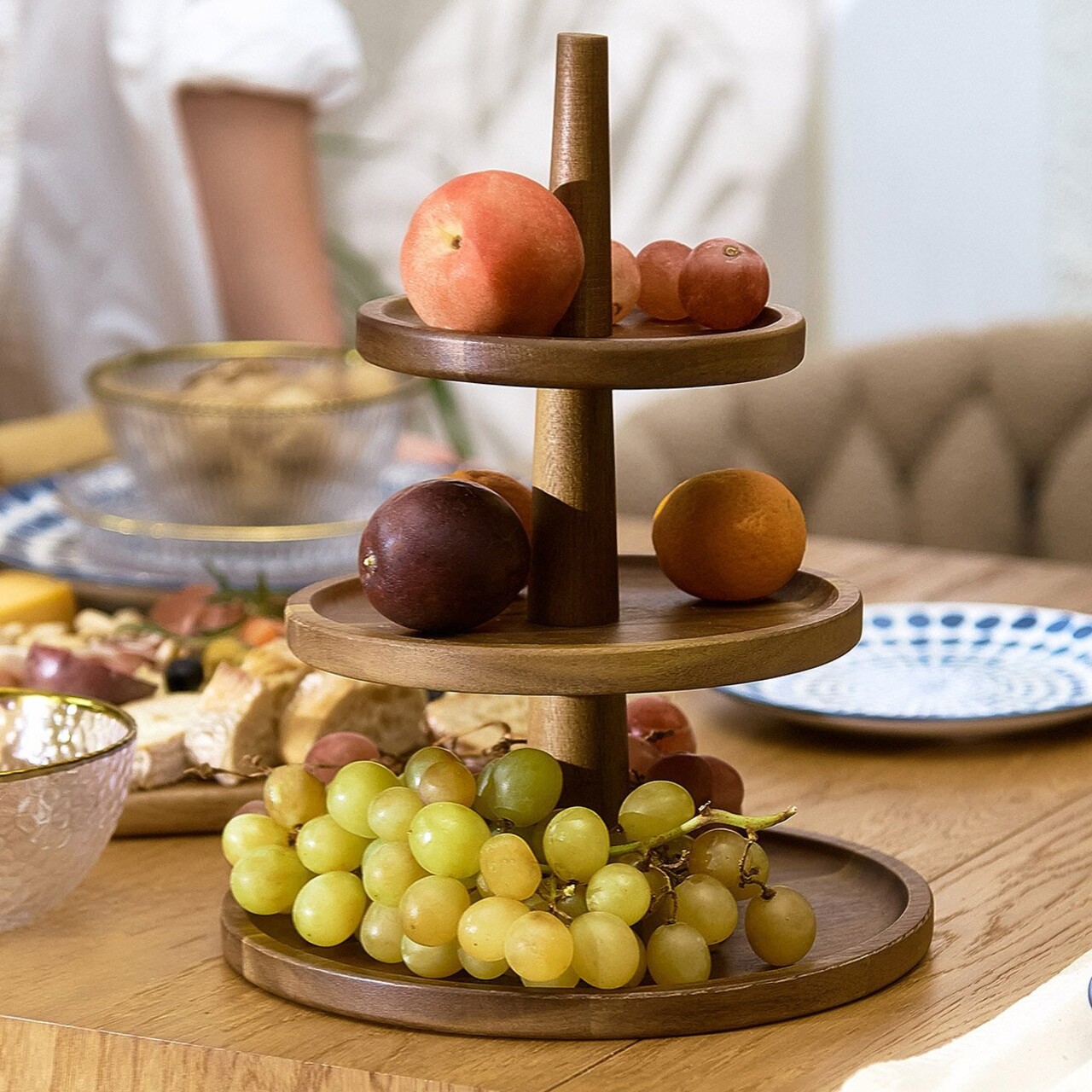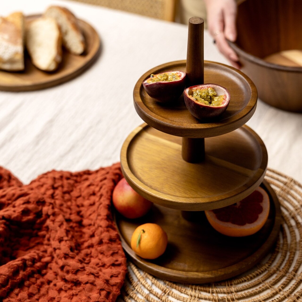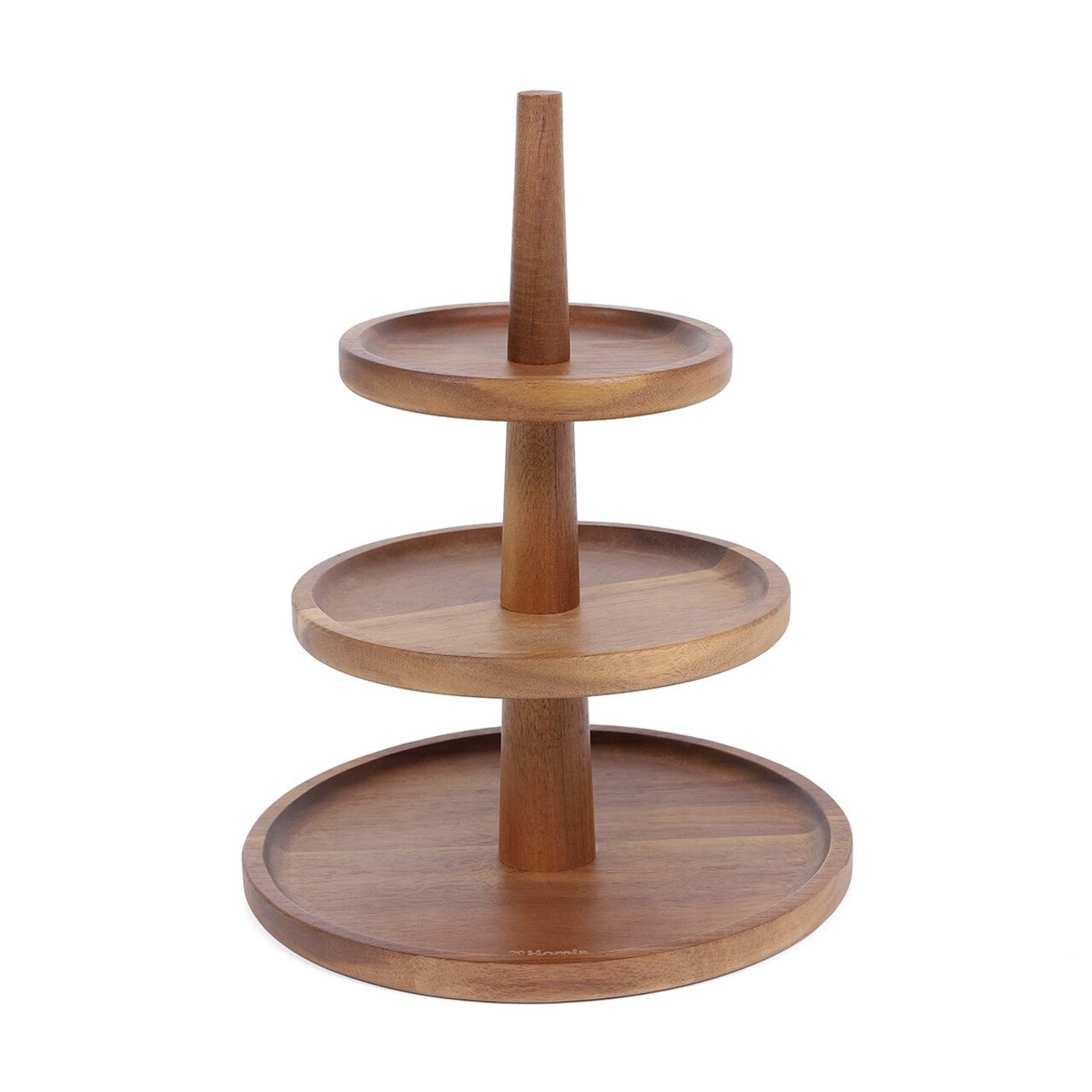Platou servire cu 3 etaje Mooka, Homla, 25x32 cm, lemn, maro