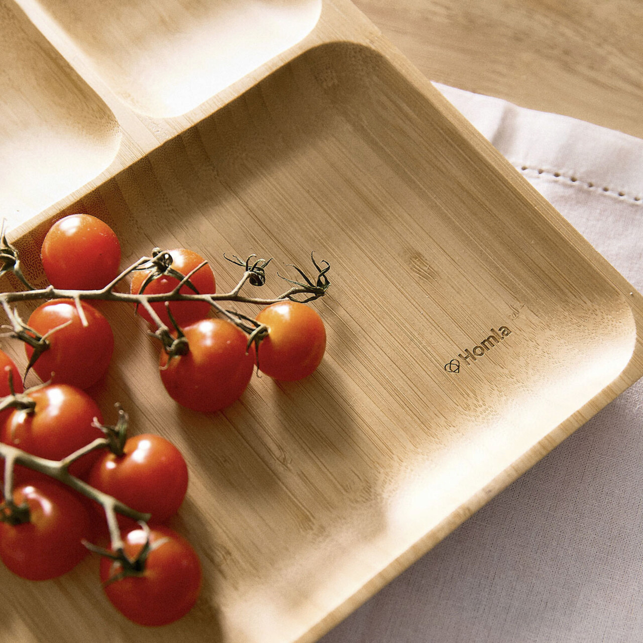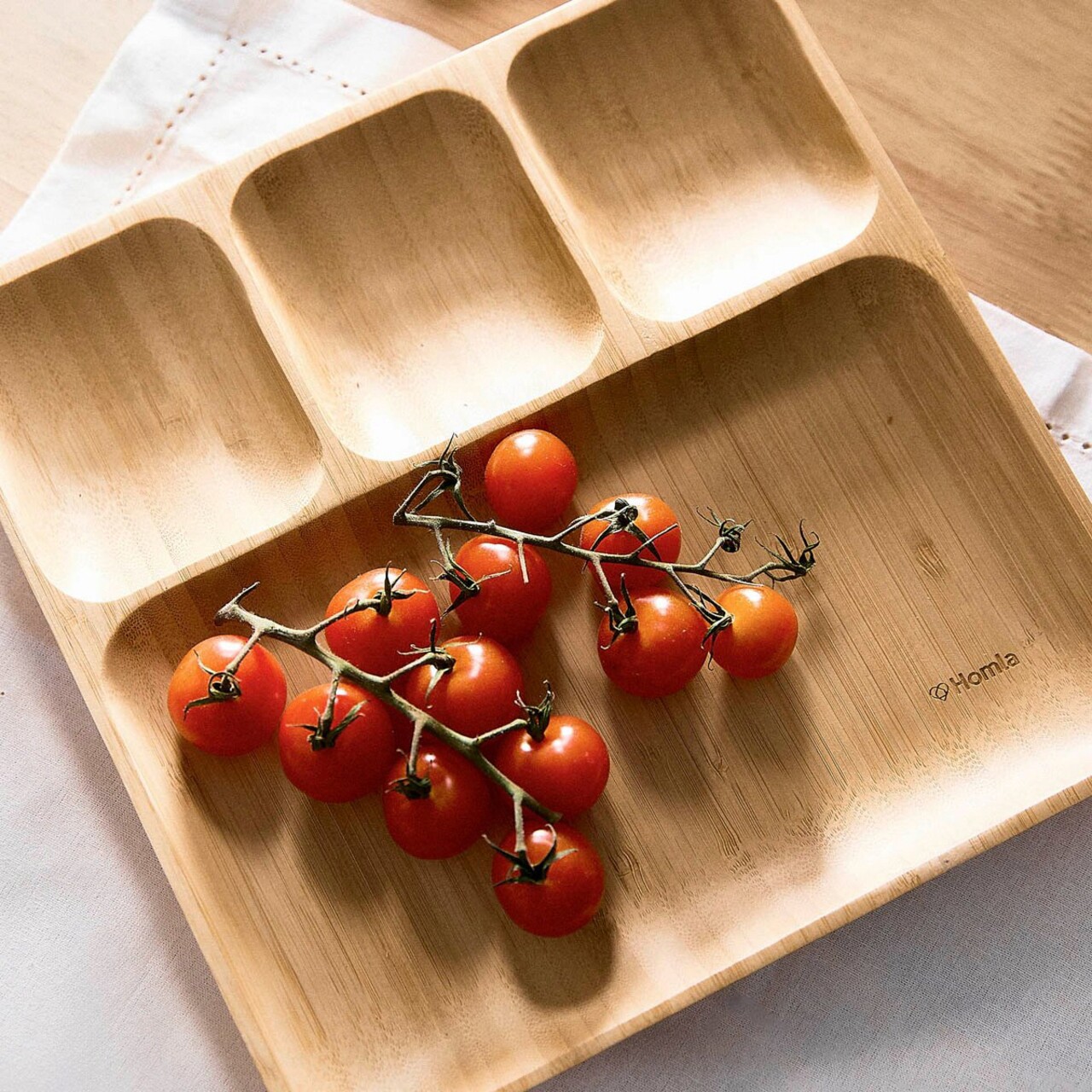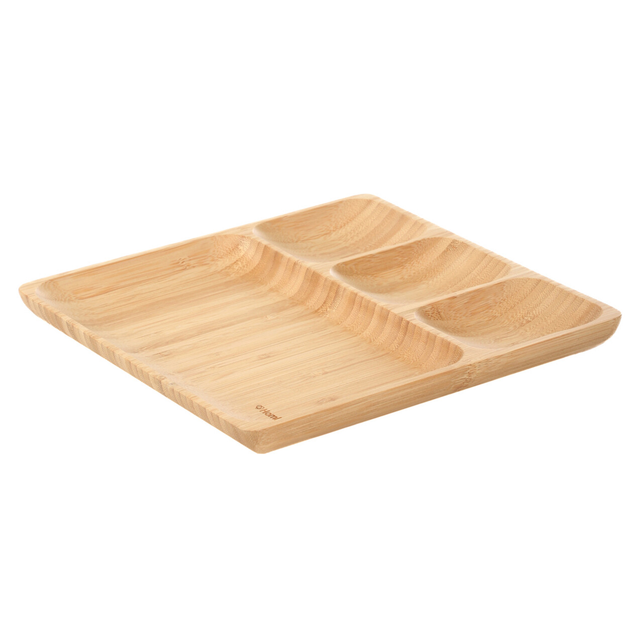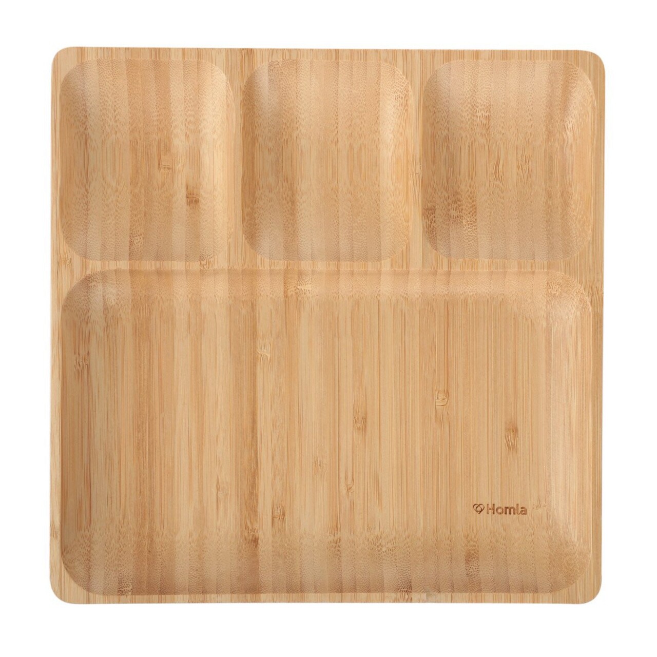 Platou servire cu 4 compartimente Bambou, Homla, 25x25 cm, lemn, natur