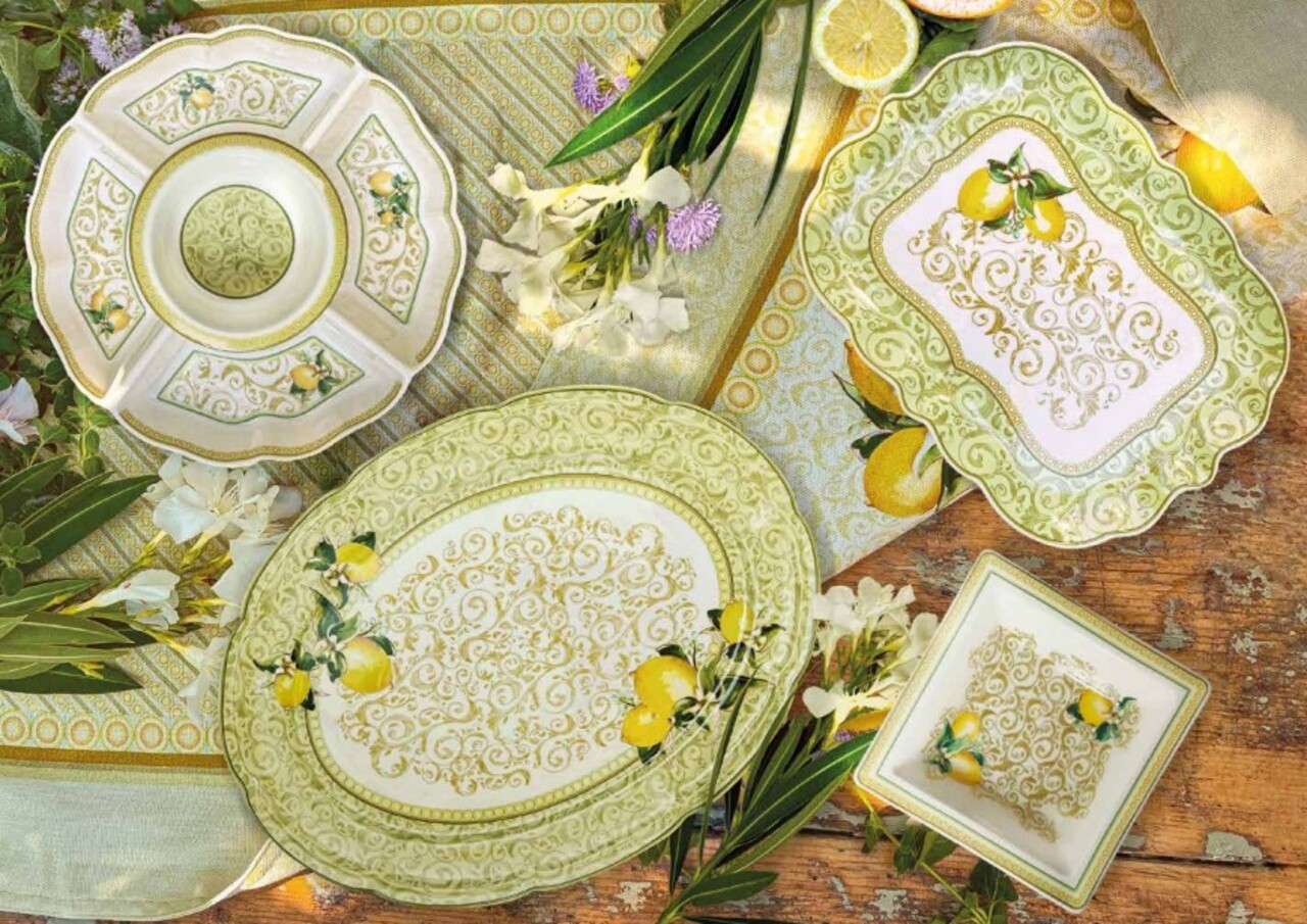 Proaspata, eleganta, delicata: colectia Lemoni reflecta peisajele mediteraneene, unde natura vesnic verde se combina cu florile si fructele pentru a crea un paradis de parfumuri si nuante. Decor elegant si culori stralucitoare combinate intr-un set de articole de masa si de uz casnic concepute pentru a regenera mintea si spiritul.