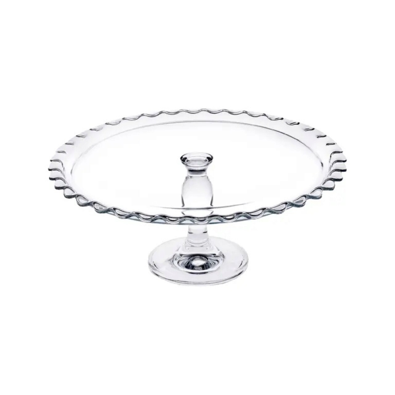 Un suport de tort cu marginea usor curbata, ondulata in sus. Datorita piciorului inalt, va afisa frumos fructele si produsele de patiserie de casa. Acesta va permite oaspetilor sa-si serveasca tortul preferat. Forma eleganta va fi un plus decorativ pentru orice sufragerie. Fabricat din sticla de inalta calitate, rezistenta la deteriorare.