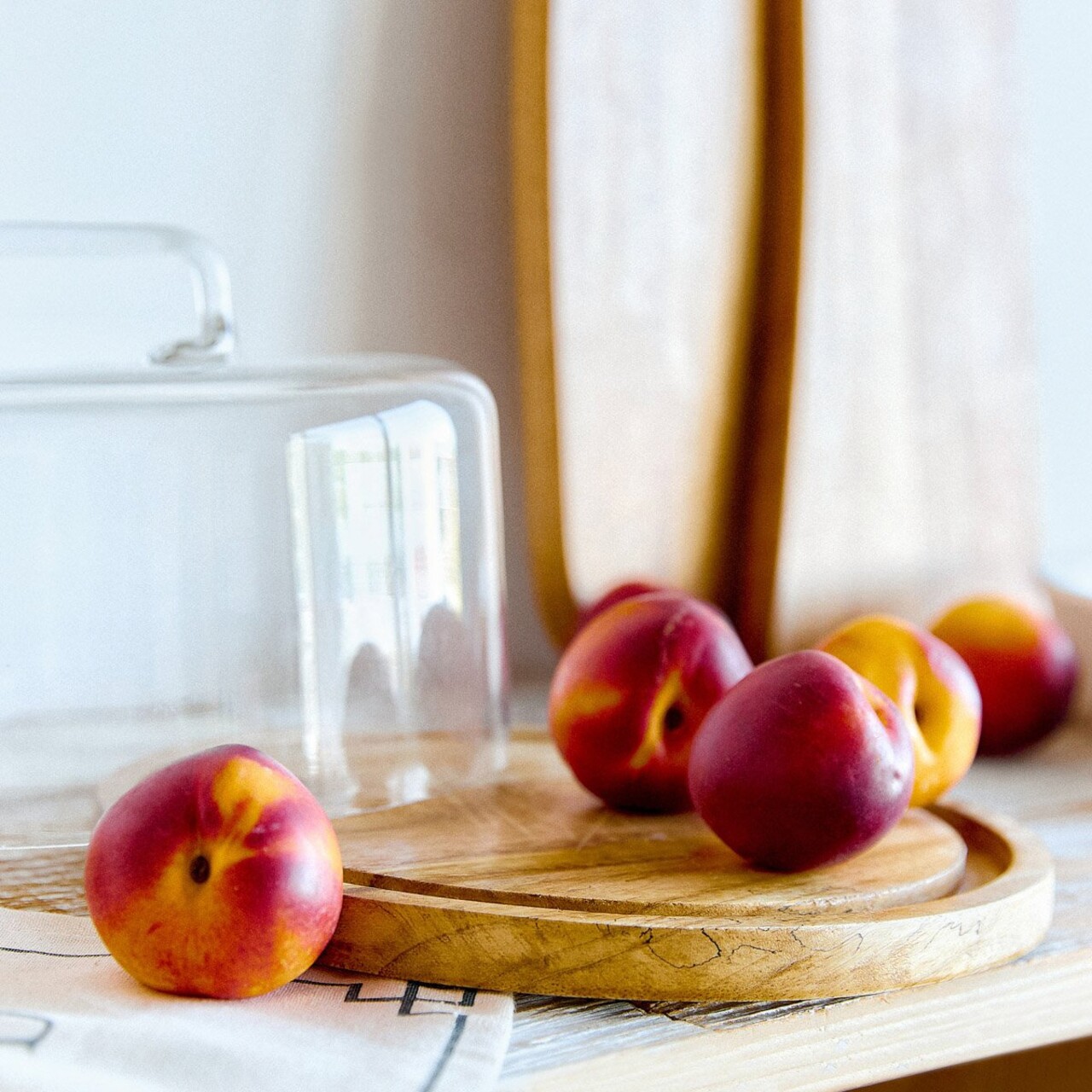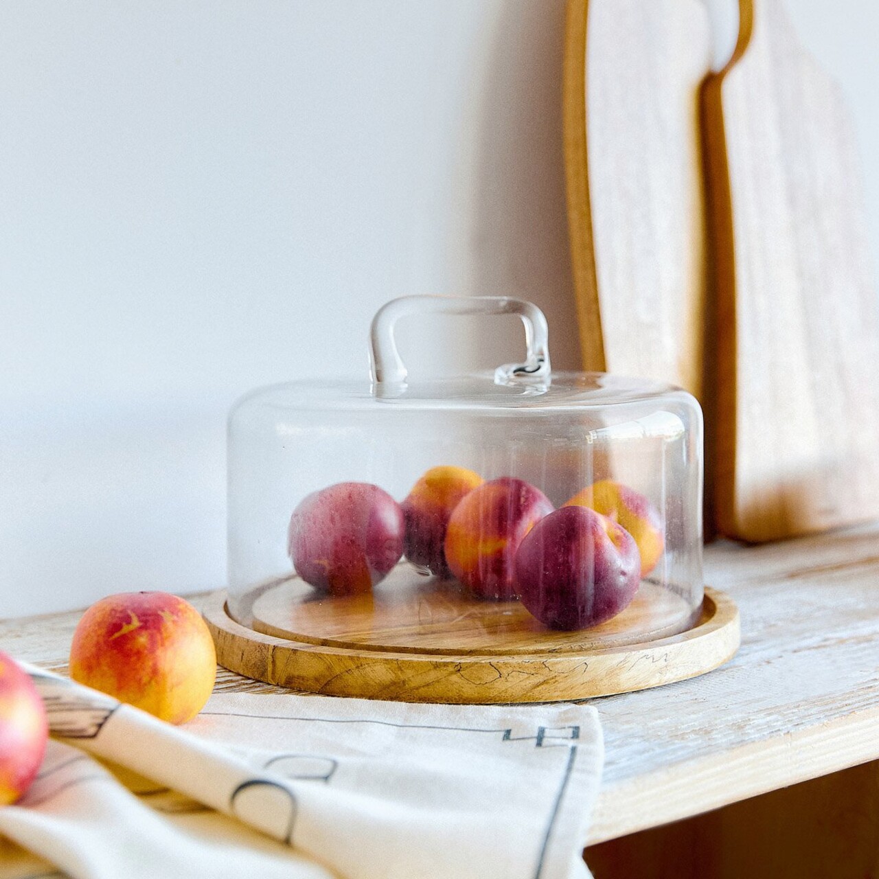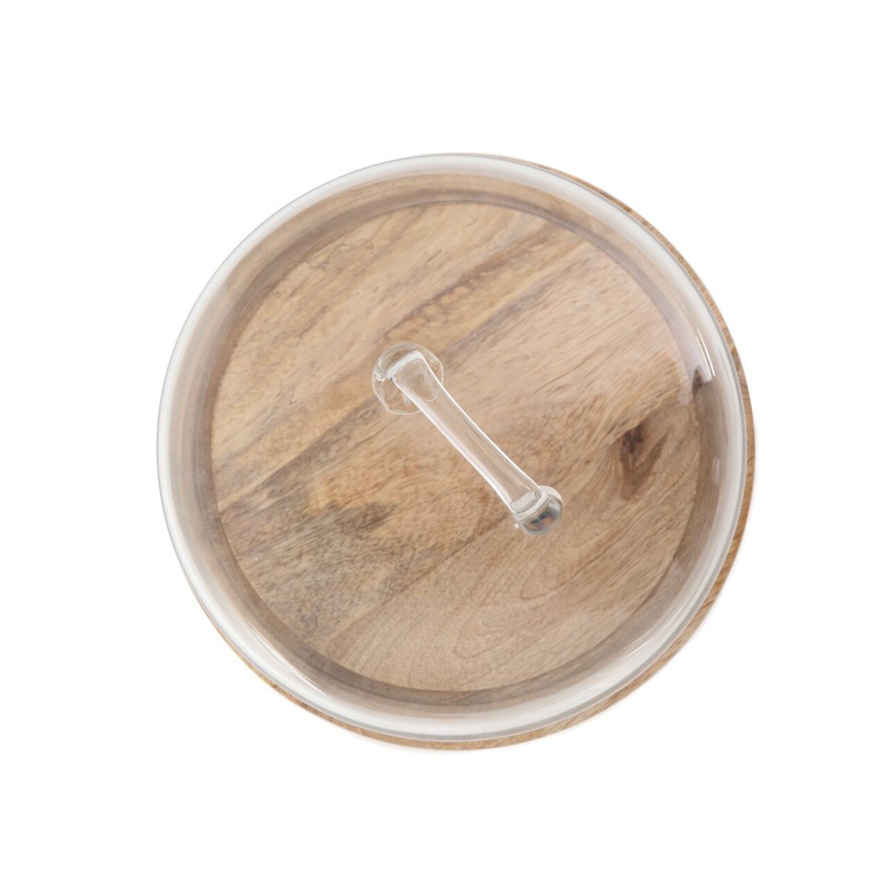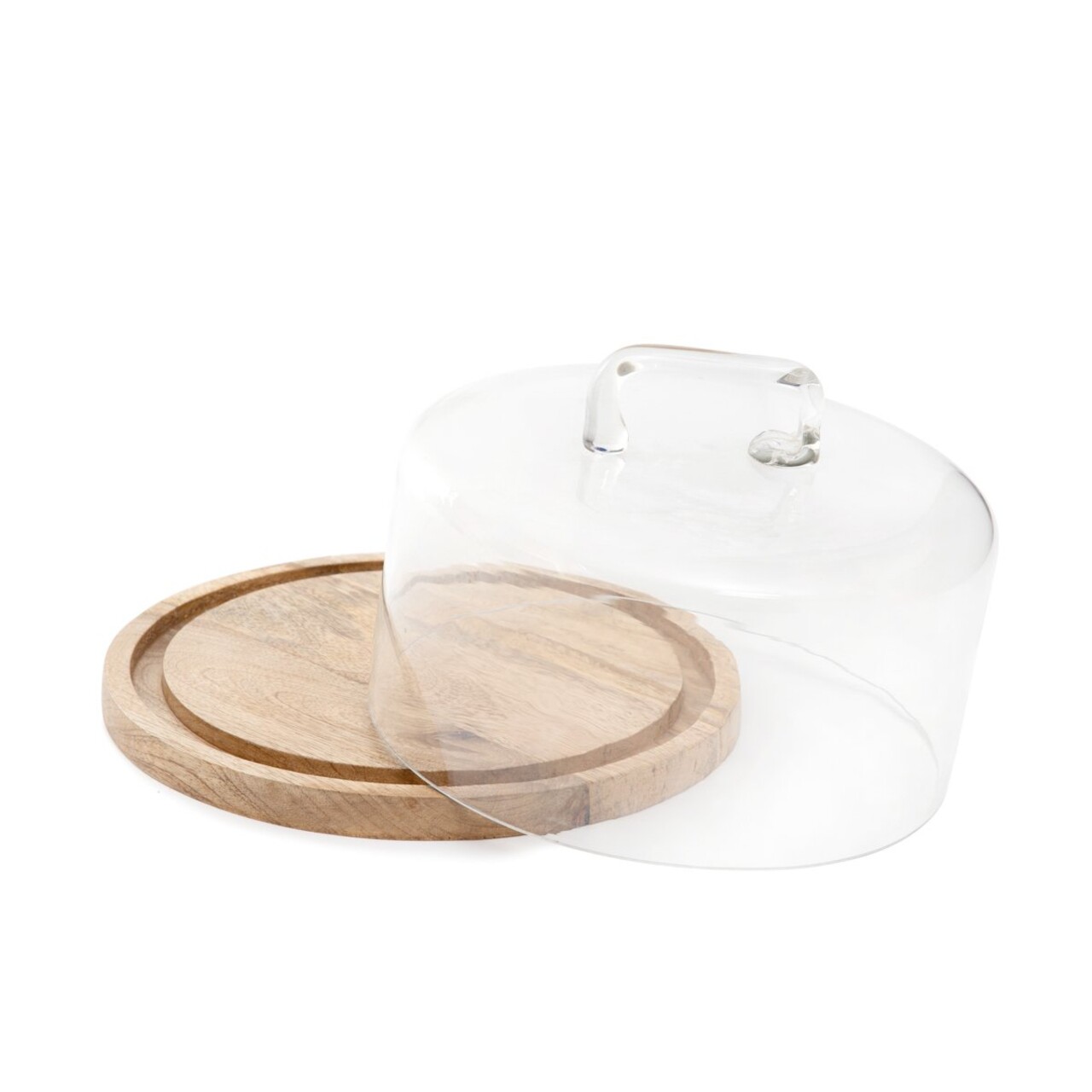 Platou tort cu capac Wood Colony, Homla, 25x16 cm, lemn/sticla, natur/transparent