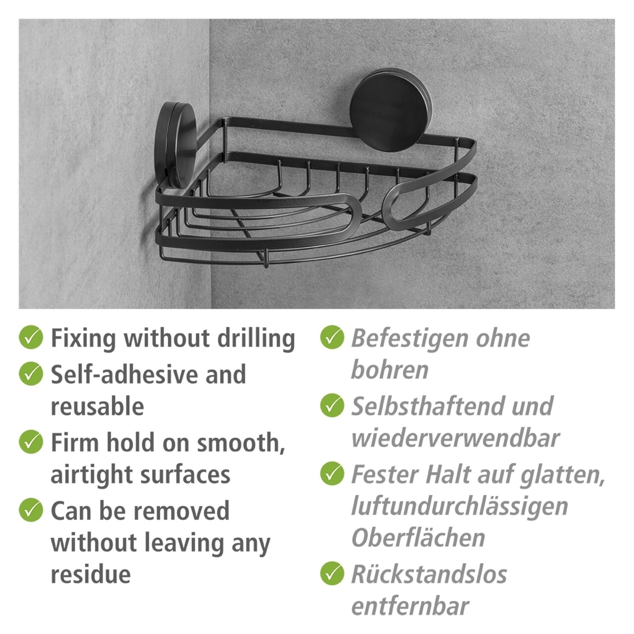 Polita de colt pentru baie Pavia, Wenko, 27x20x9.8 cm, metal/ABS, negru