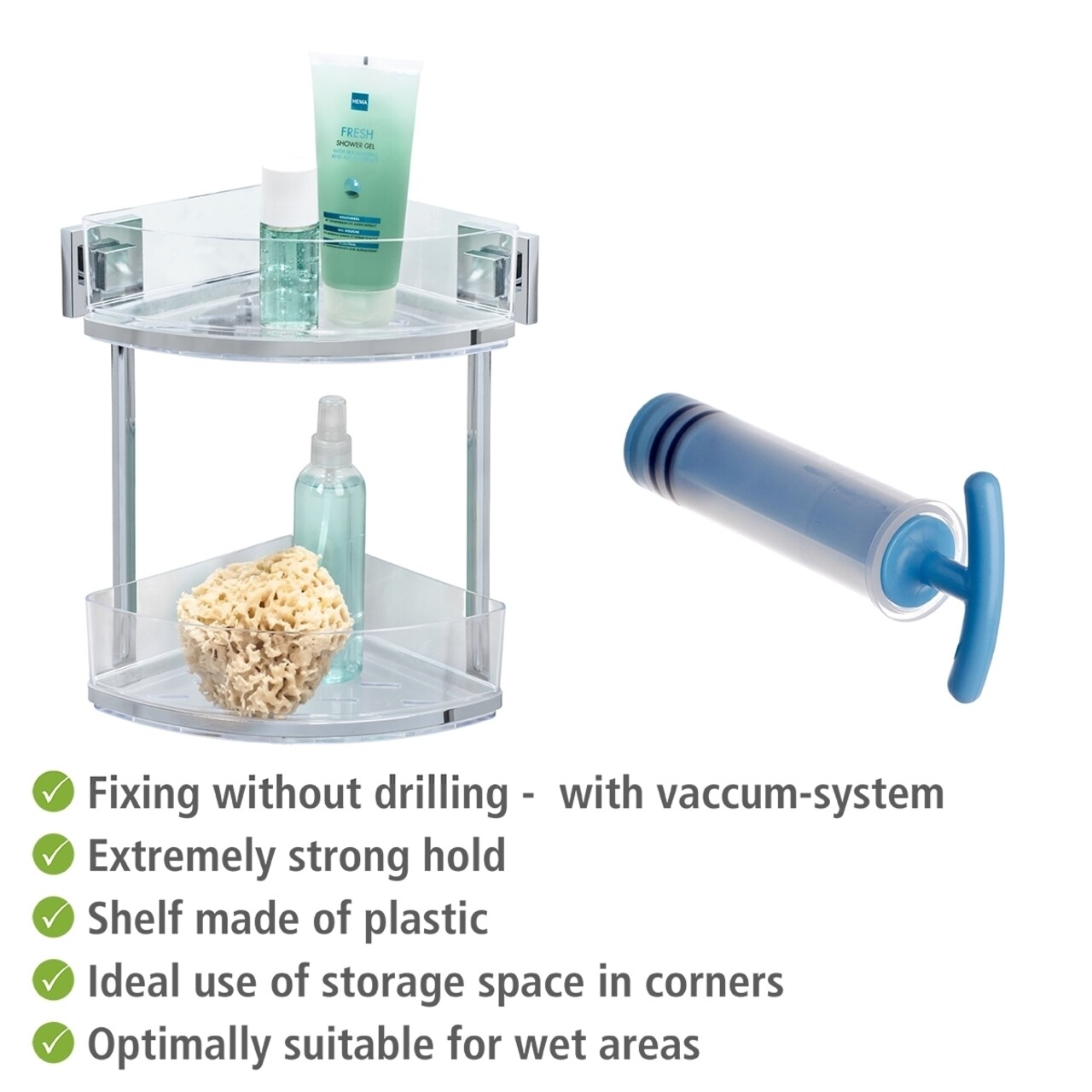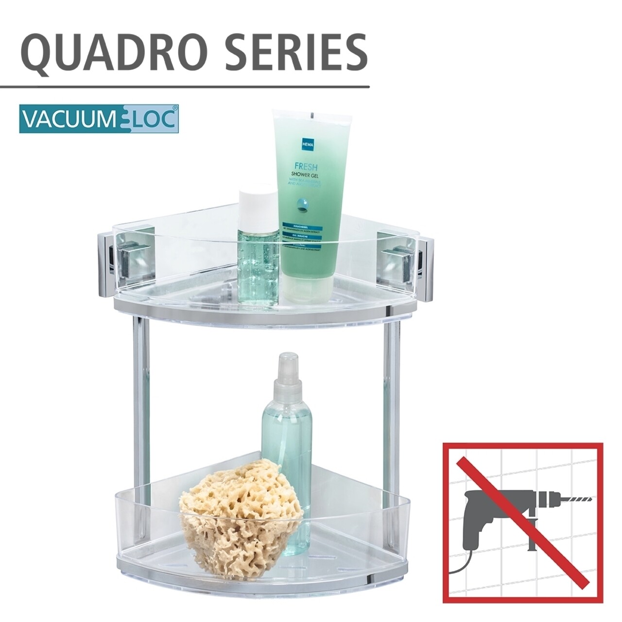 Polita de colt pentru baie, Wenko, Quadro Vacuum-Loc®, 28 x 32.5 x 19.5 cm, inox/plastic