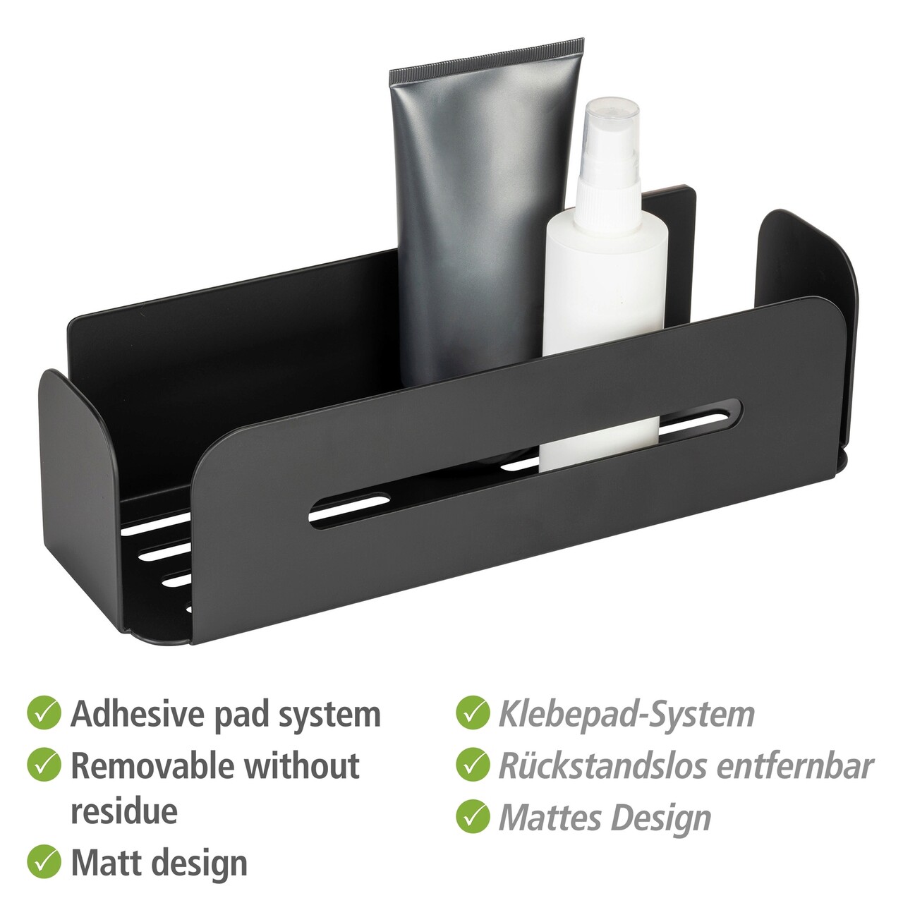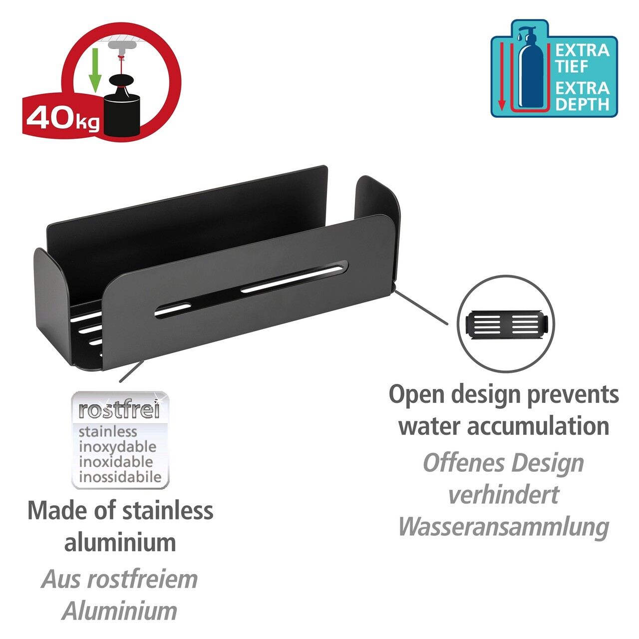 Polita pentru baie Bivio, Wenko, 30x10.5x8 cm, aluminiu, negru