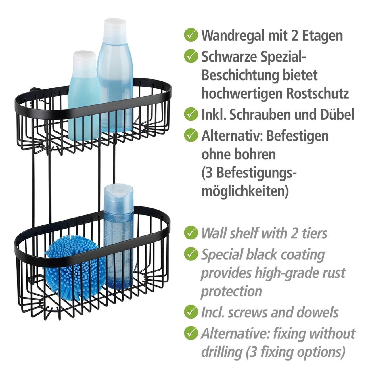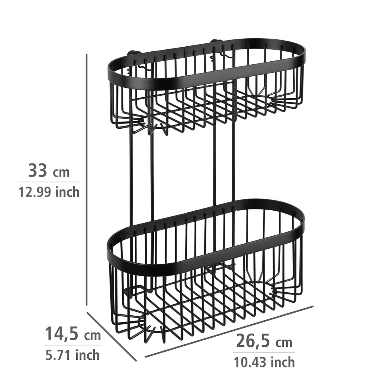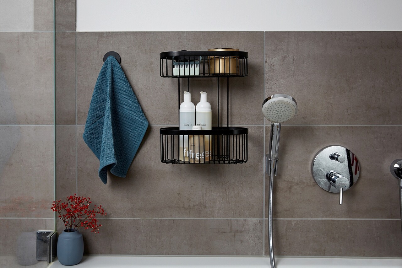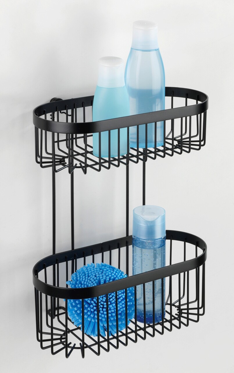 Polita pentru baie Classic Plus, Wenko, 26.5x14.5x33 cm, metal/otel, negru