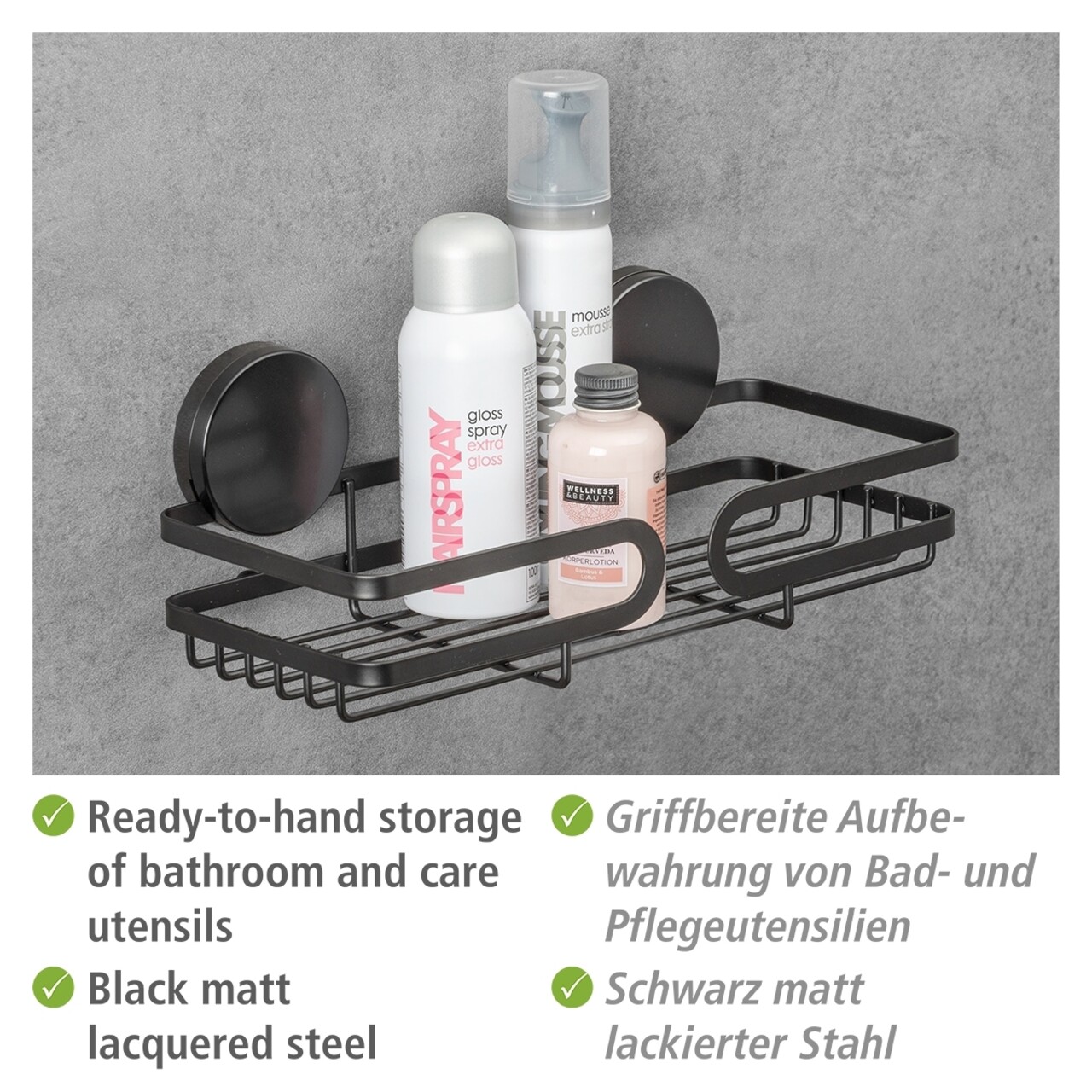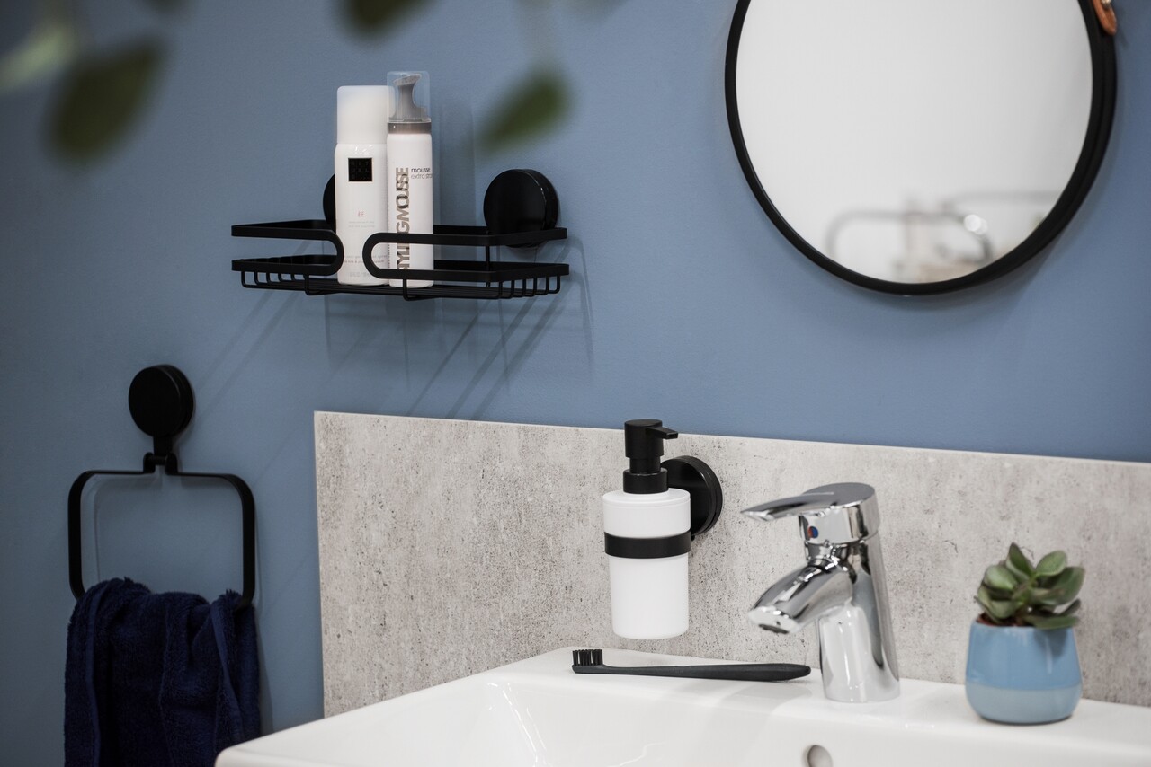 Polita pentru baie Pavia, Wenko, 26x12x9.7 cm, metal/ABS, negru