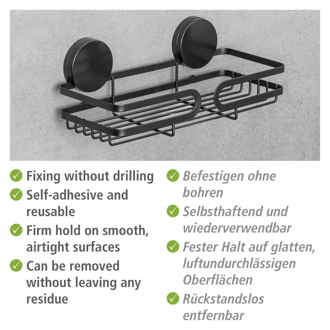 Inovator si la moda, raftul de perete de la WENKO pune accente in orice gospodarie. Raft-ul Static-Loc® Plus se agata prin incarcare statica si ofera o strangere puternica pe suprafete netede, impermeabile (cum ar fi gresie, sticla, panouri din lemn laminat) fara nicio insurubare si gaurire!