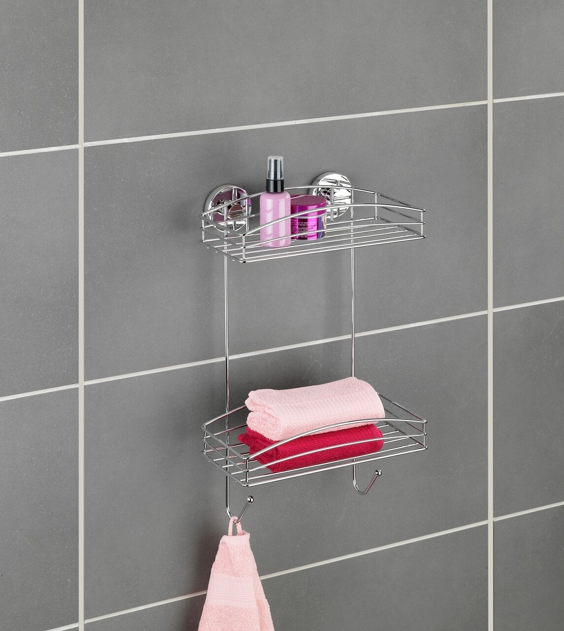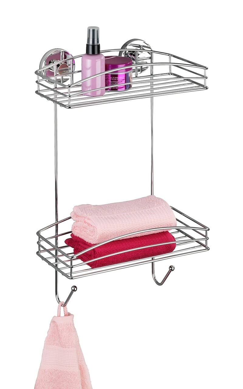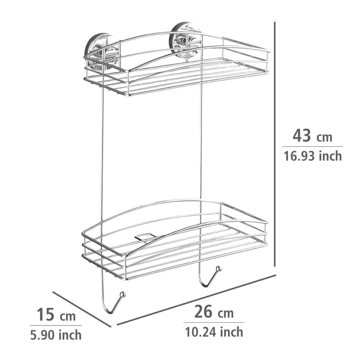 Polita pentru baie, Wenko, Vacuum-Loc®, 26 x 15 x 43 cm, inox