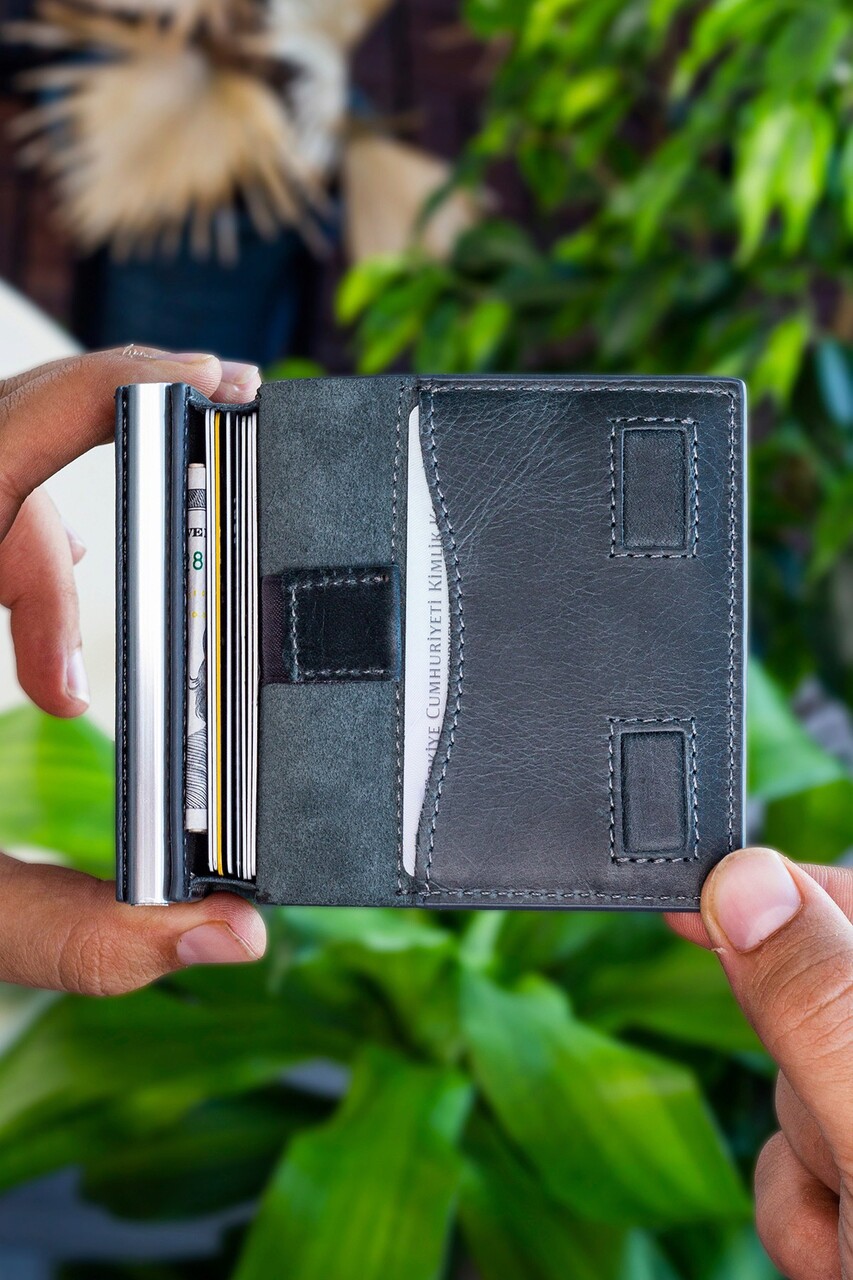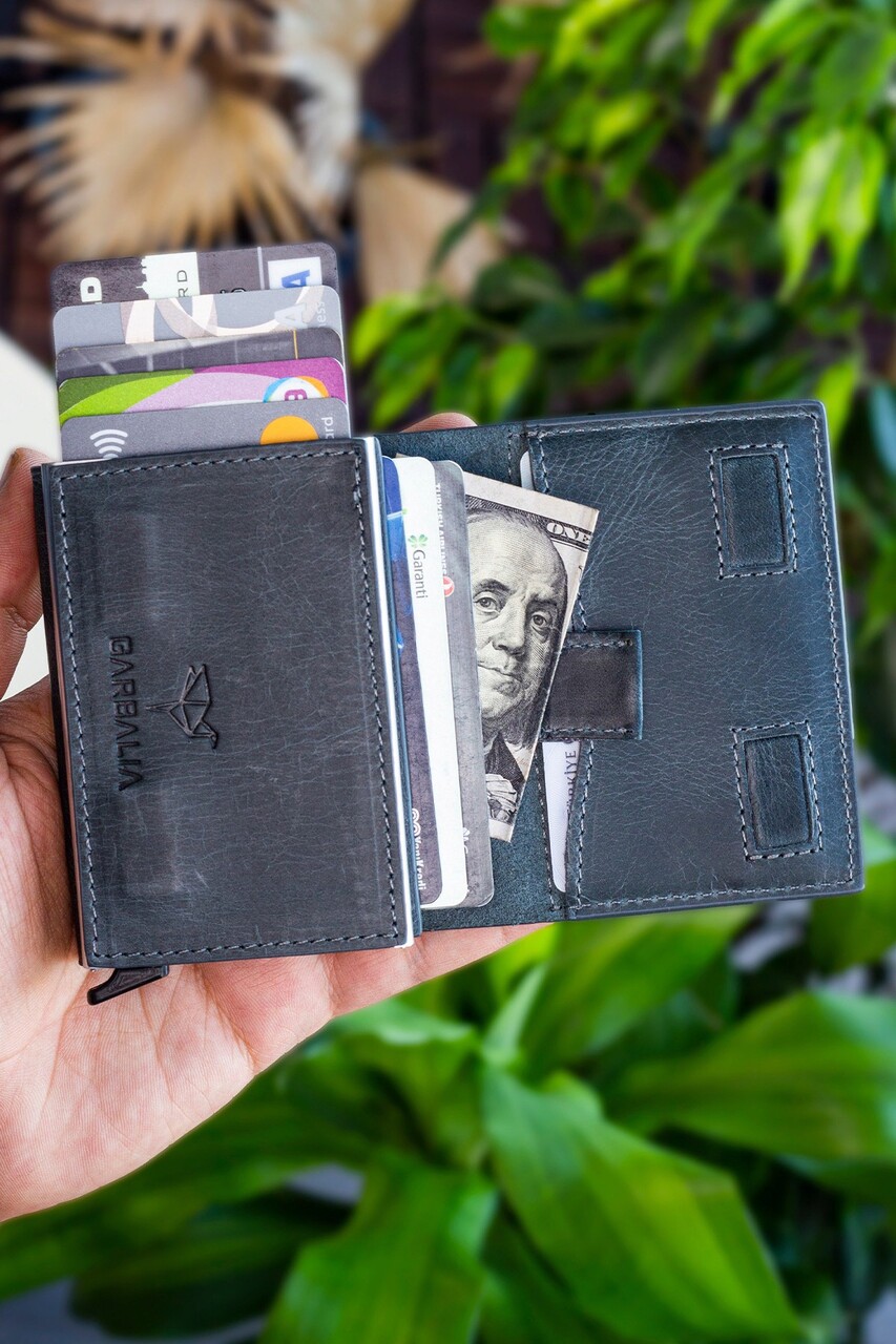 Portofel pentru carduri, Smokey, Garbalia, Piele naturala