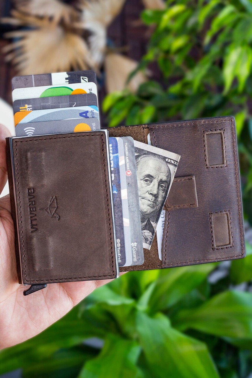 Portofel pentru carduri, Smokey, Garbalia, Piele naturala