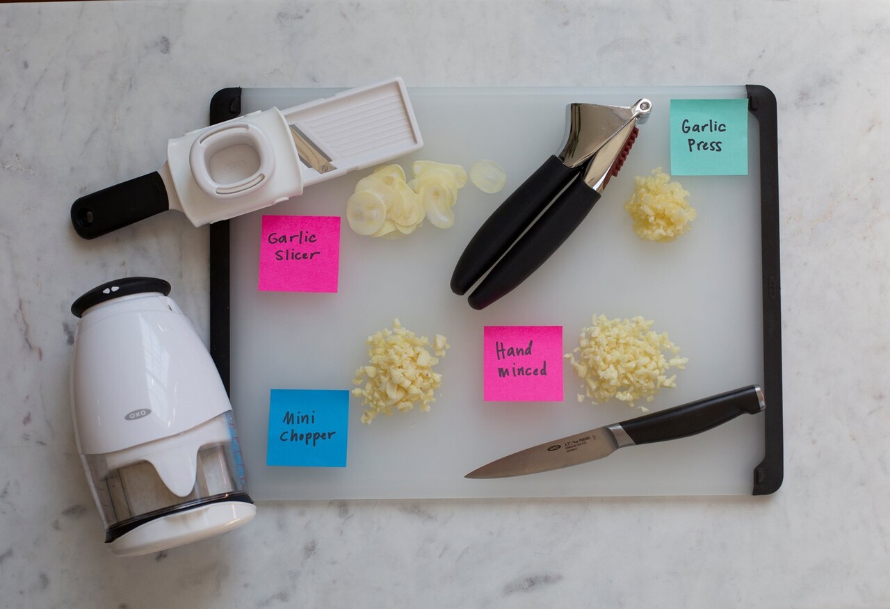 Prepararea unui mujdei de usturoi delicios nu trebuie sa fie o sarcina prea grea, Doar strange cu putere presa pentru usturoi de laOXO.