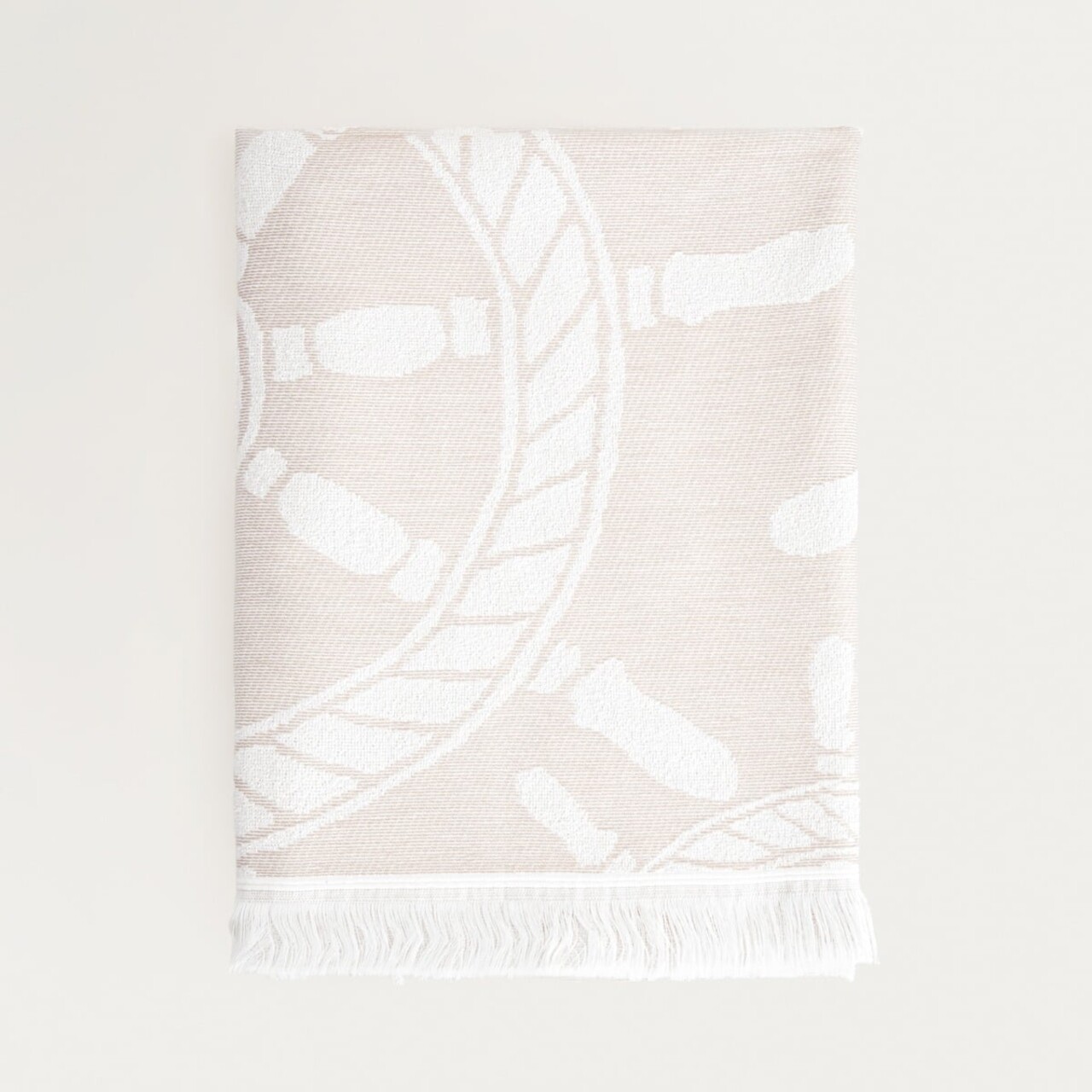 Prosop de plaja Ancora, Homla, 90x170 cm, bumbac, bej/alb