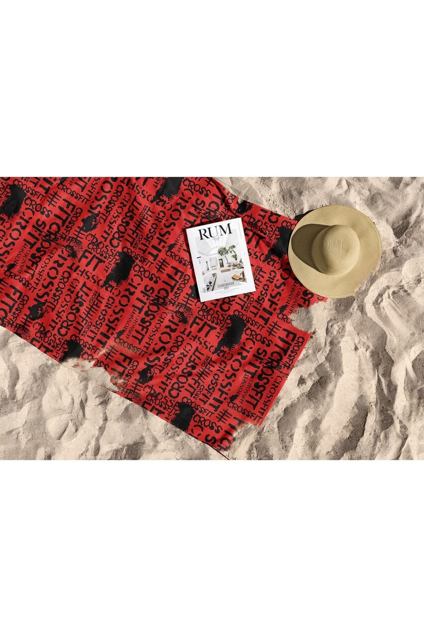 Prosop de plaja, Astacura, Crossfit Red 90, 90x150 cm, 70% poliester/30% poliamida, Multicolor