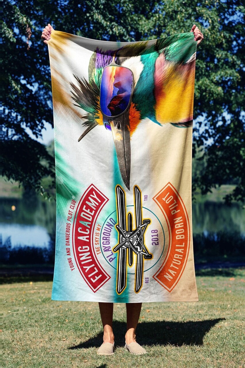 Prosop de plaja, Astacura, Flying Academi 70, 70x130 cm, 70% poliester/30% poliamida, Multicolor