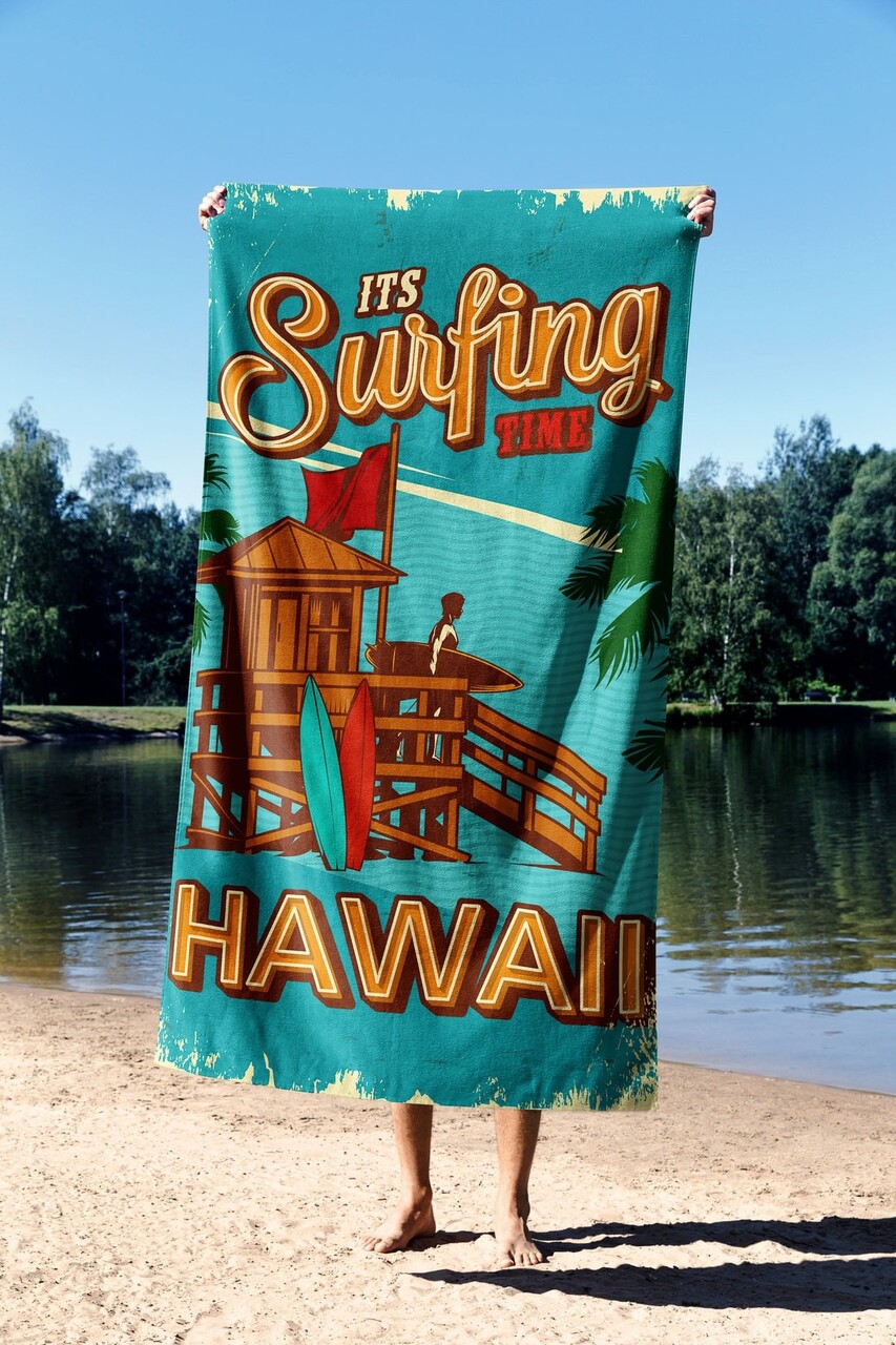 Prosop de plaja, Astacura, Surfing Time Hawaii 70, 70x130 cm, 70% poliester/30% poliamida, Multicolor