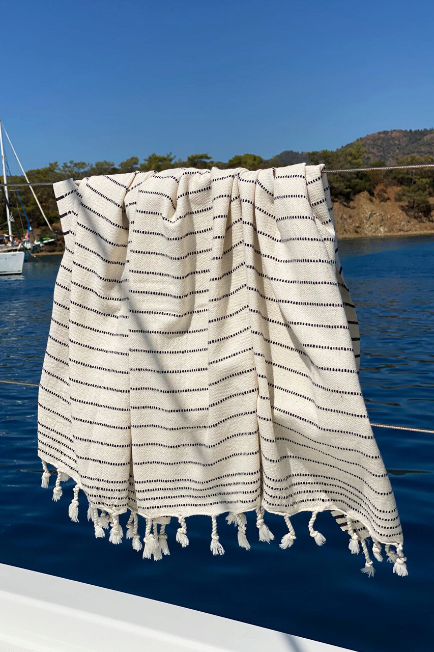 Prosop de plaja, L'essentiel Maison, Capri, Negru / Crem