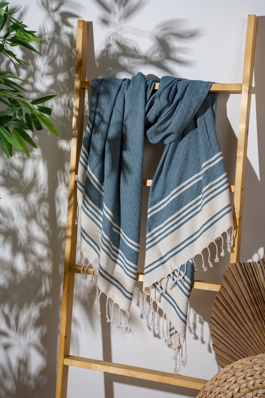 Prosop de plaja, L'essentiel Maison, New Diamond, Albastru indigo