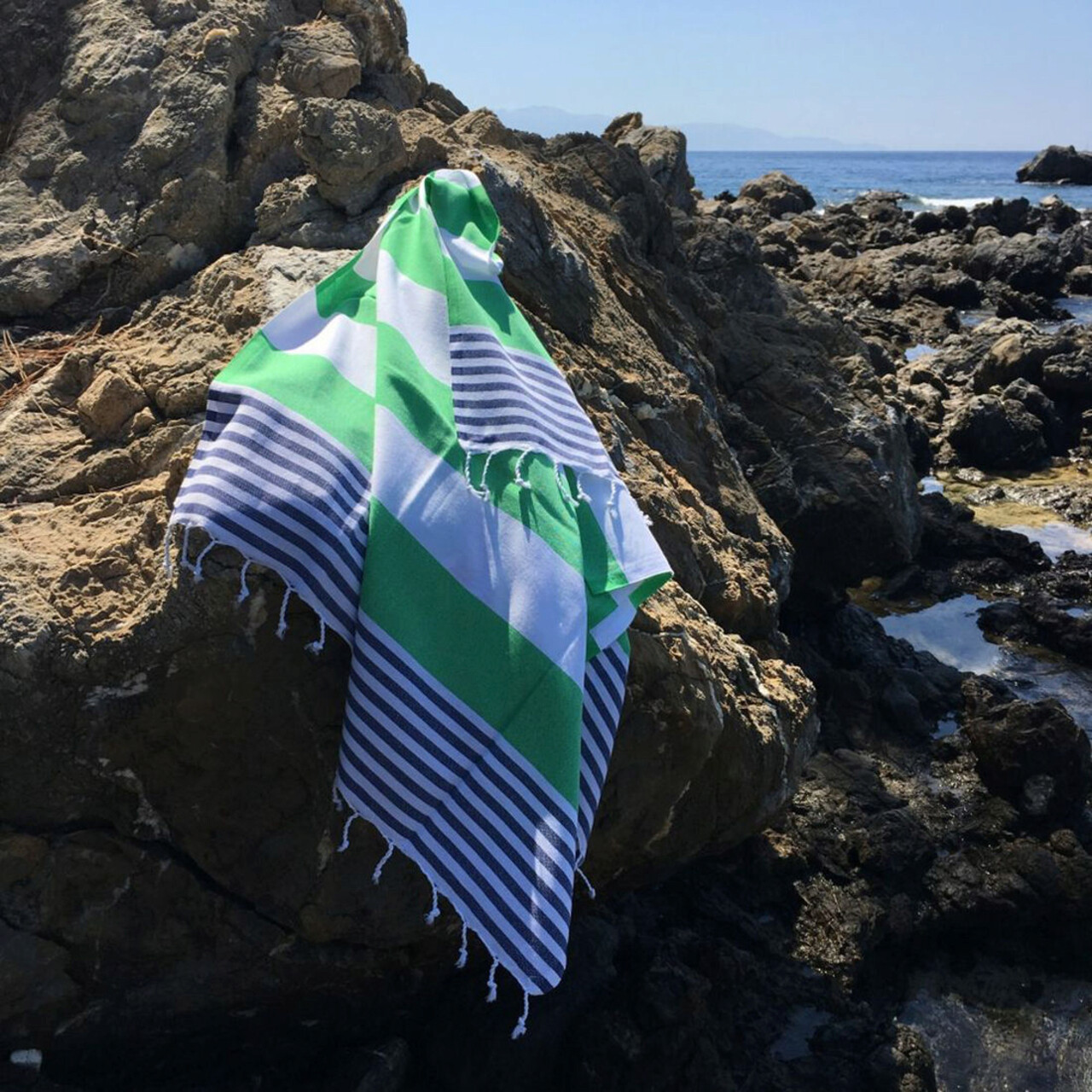 Prosop de plaja, L'essentiel Maison, Sultan, Albastru închis/Verde/Alb