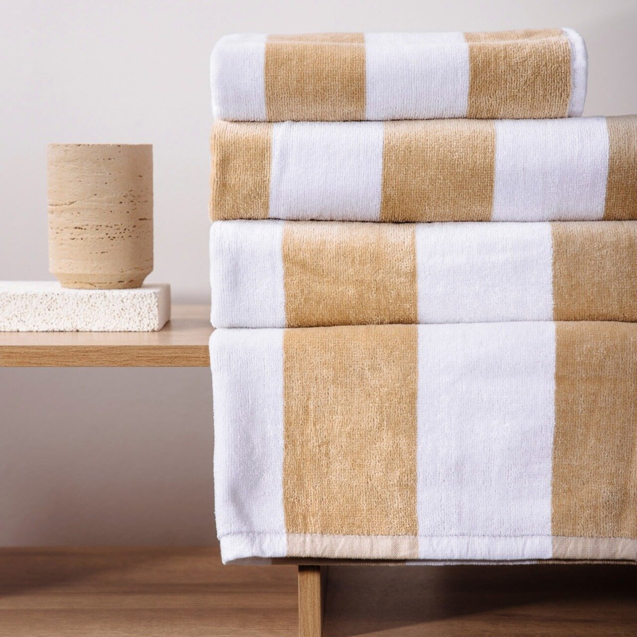 Prosop de plaja Lawena, Homla, 100x150 cm, bumbac, alb/bej