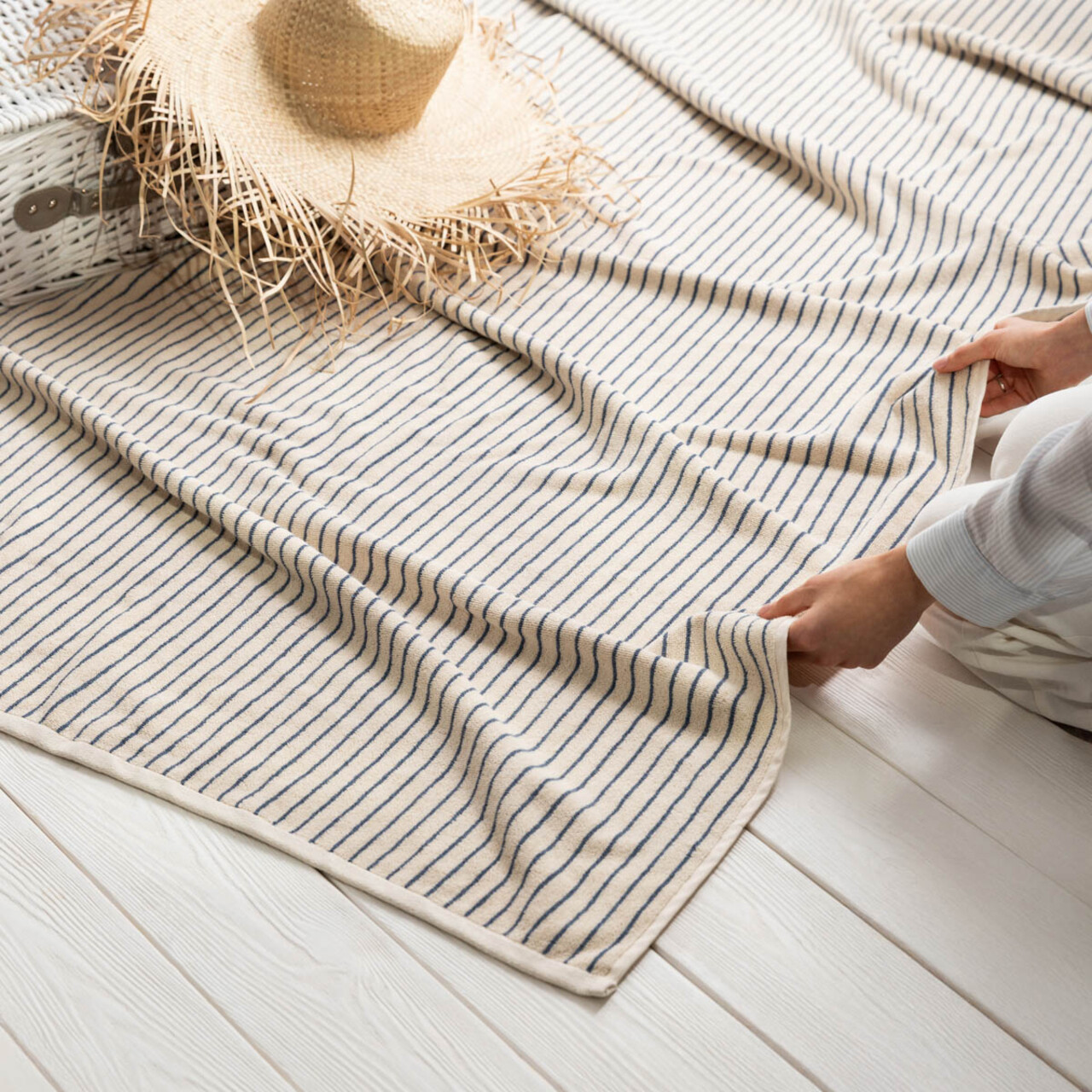 Prosop de plaja Rander, Homla, 100x190 cm, bumbac, bej/albastru
