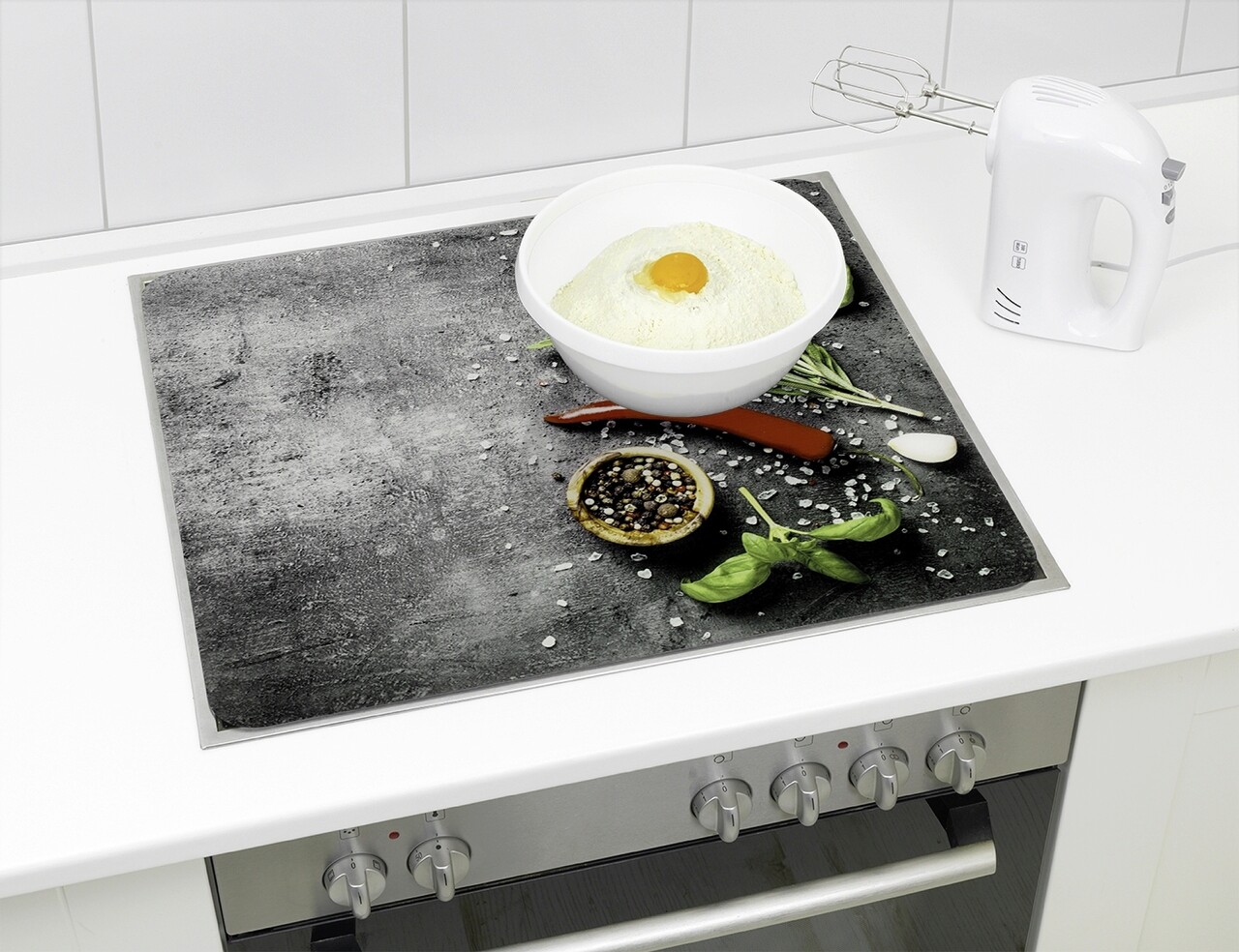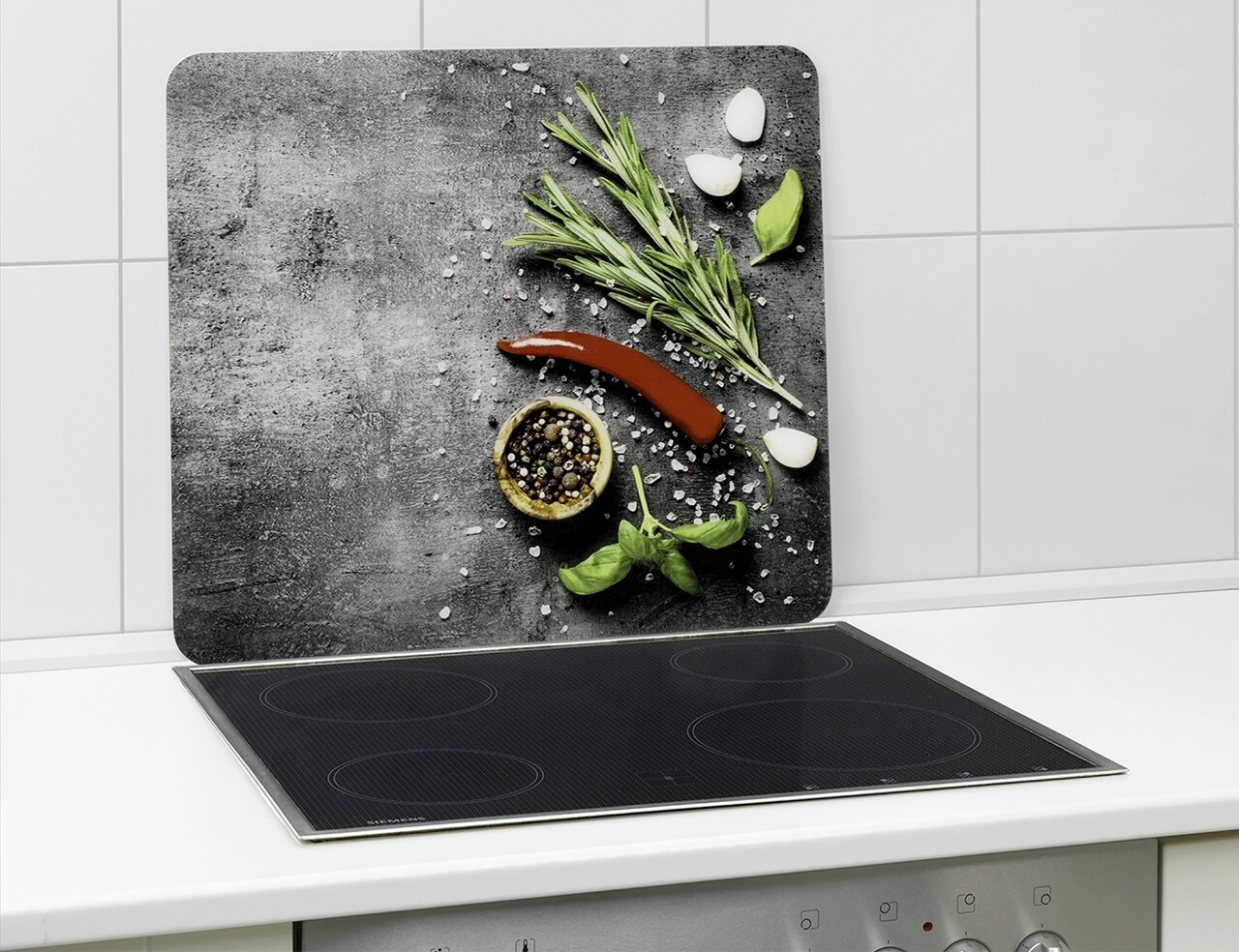 Protectie universala pentru aragaz Maximex, Rosemary, 56x50 cm, sticla, multicolor