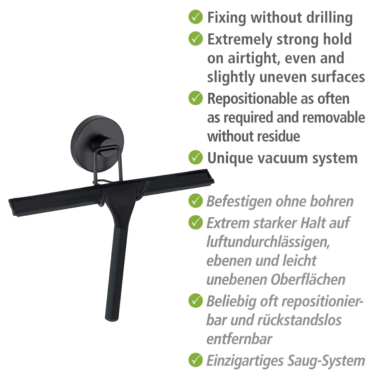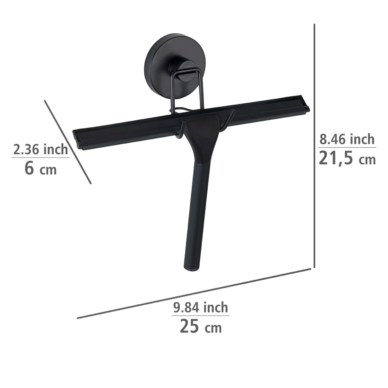 Racleta cu siste de agatare, Wenko, Vacuum-Loc, 24.5 x 5 x 25 cm, inox, negru