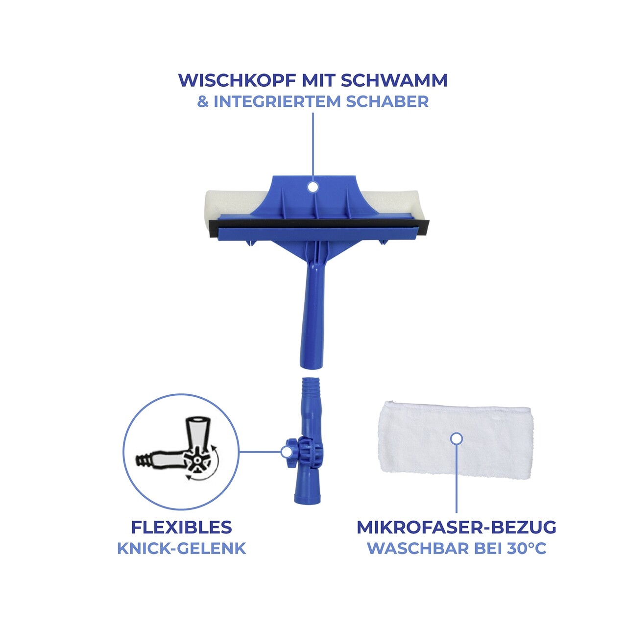 Set complet: 6 manere, cap de mop cu burete, imbinare articulata si capac din microfibra.