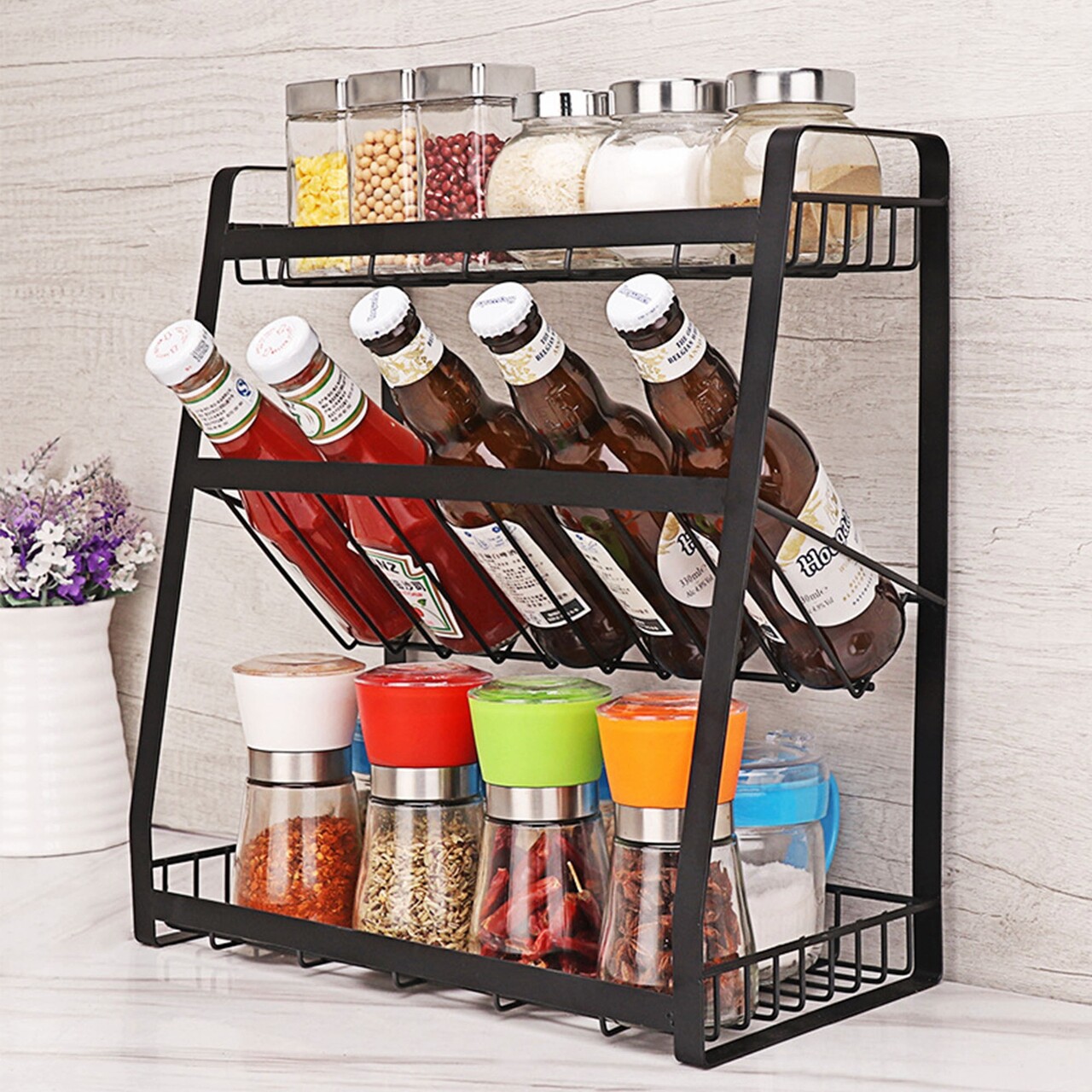 Raft pentru condimente, Cu 3 nivele, Fabricat din otel carbon, MarcaZokura.