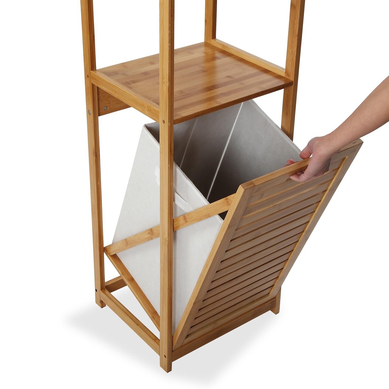 Raft de baie cu cos de rufe Barron, Versa, 37.5 x 33 x 130 cm, bambus