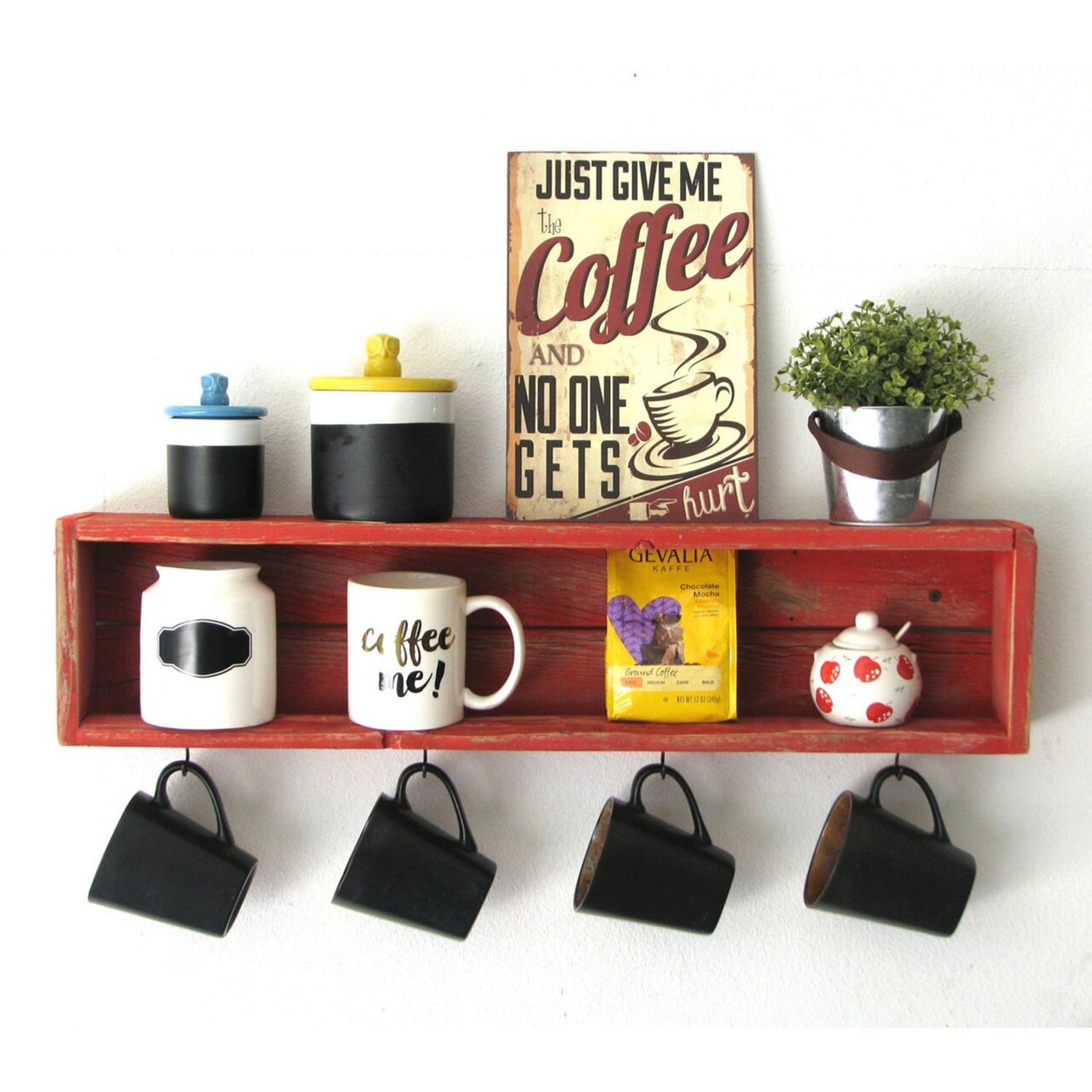 Raft de bucatarie, Evila Originals, Raf212, 70x21x10 cm, Lemn, Rosu