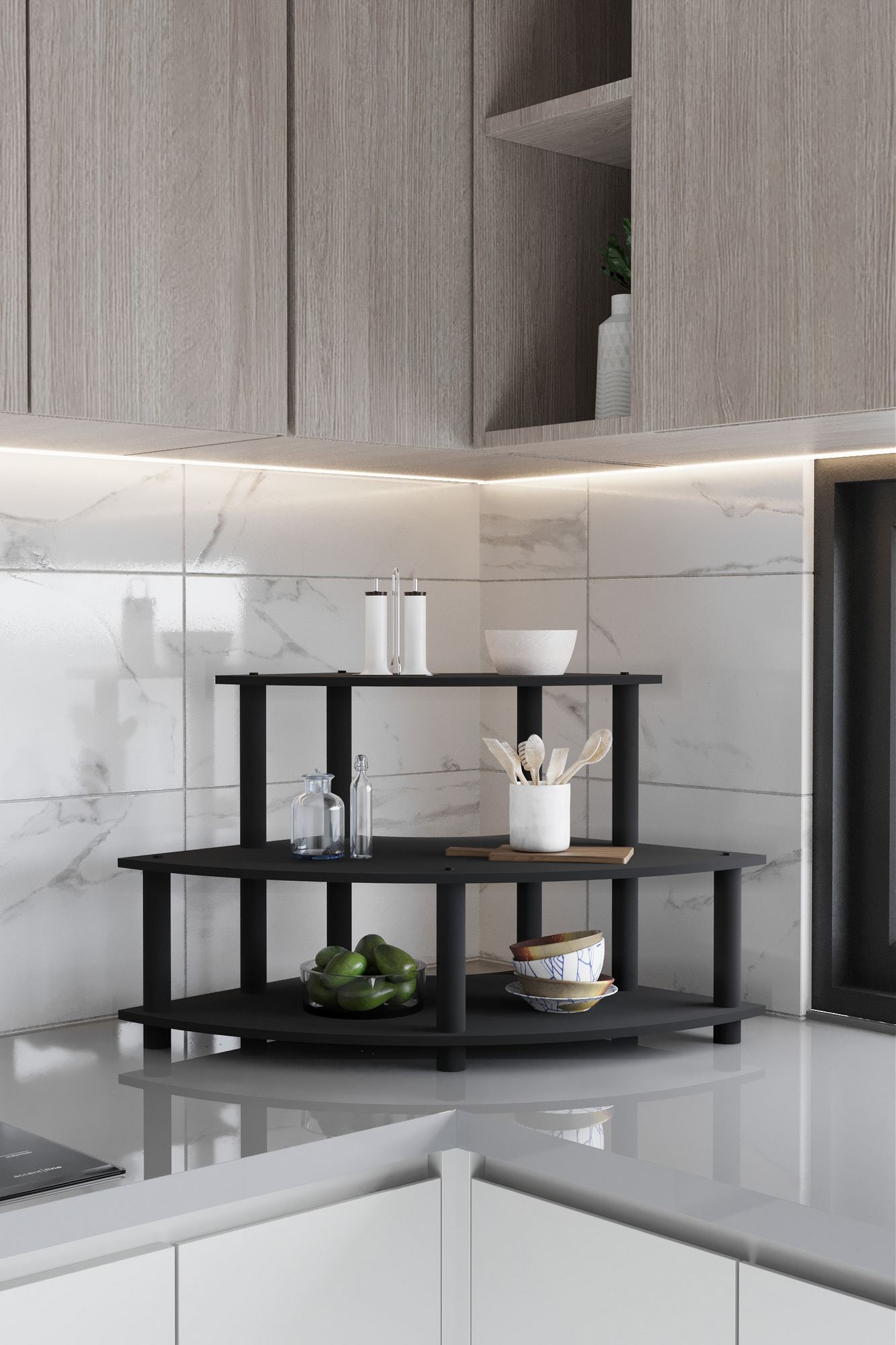 Raft de bucatarie, Hanah Home, Countertop, 70x38x42 cm, MDF , Negru