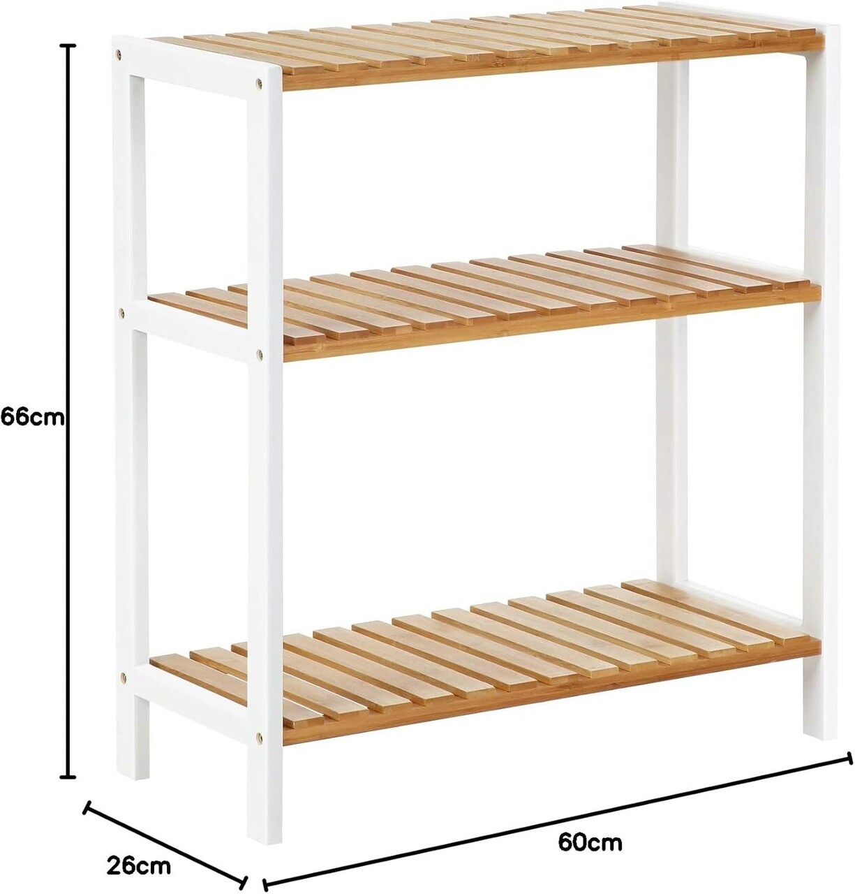 Raft de depozitare multifunctional Songmics, 60x26x66 cm, bambus, natural/alb