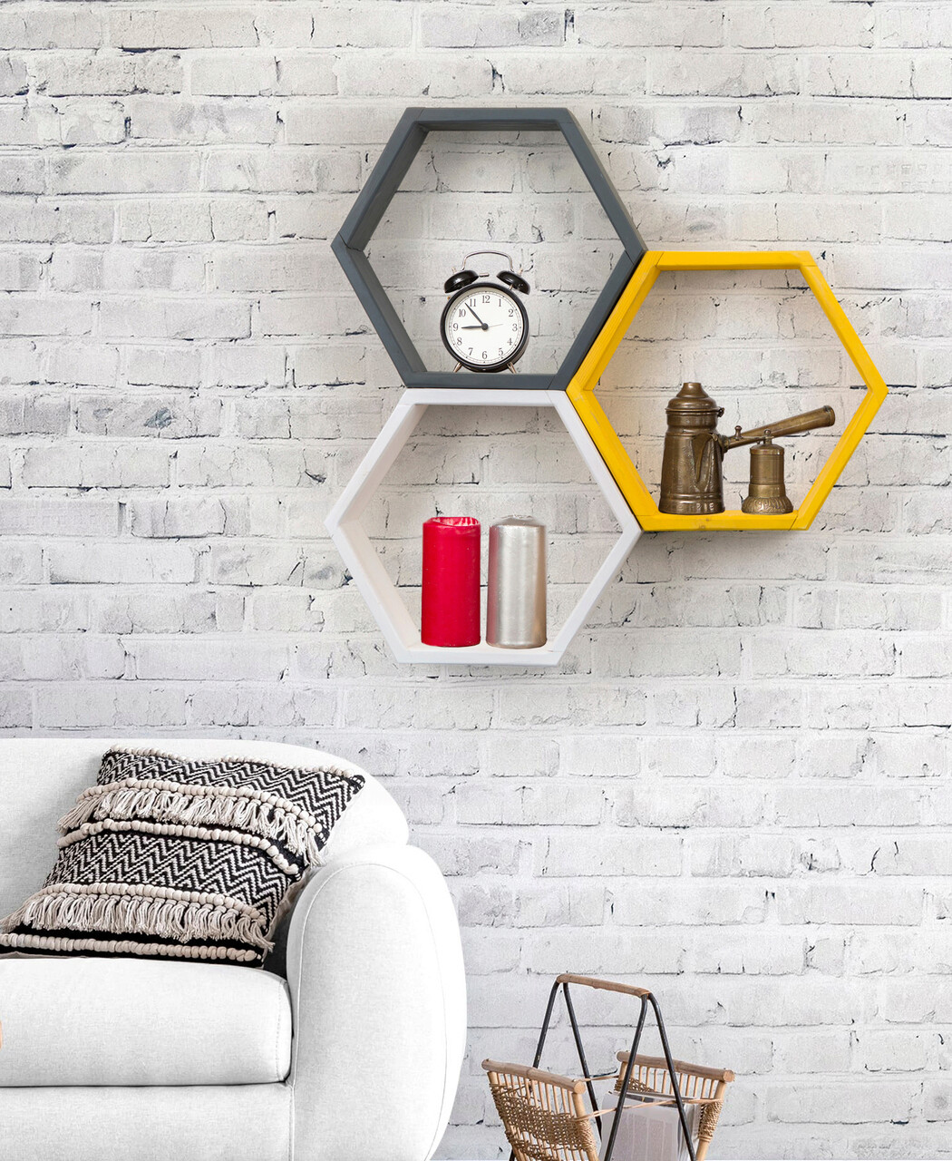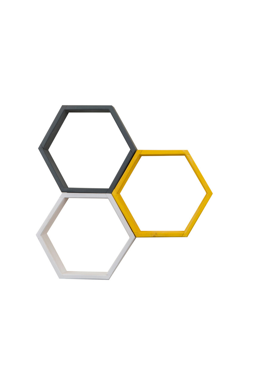 Raft de perete, Asse Home, Elfo, 58x38x9 cm, Alb / Antracit / Galben