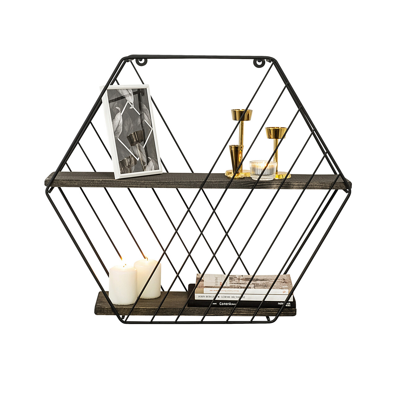 Raft de perete, Cerritos, Anemone Vulgaris, 60x52x15 cm, 100% SPRUCE WOOD (Thickness: 10 mm), Negru / Nuc Inchis