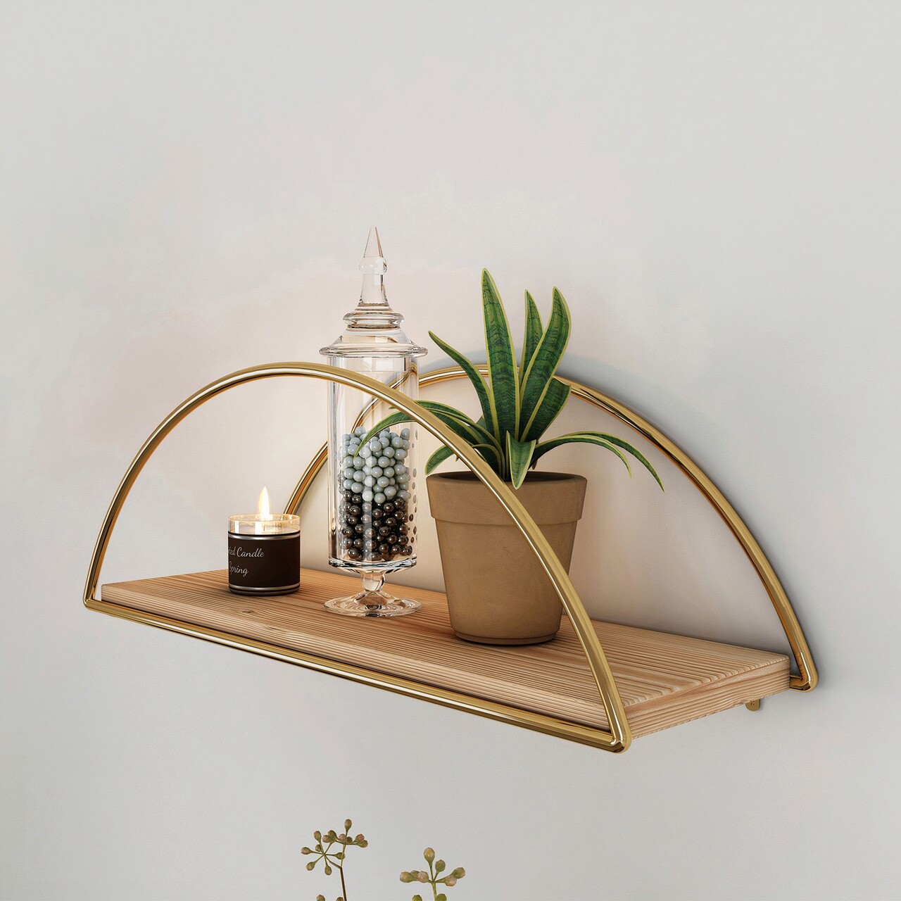 Raft de perete, Cerritos, Dekoratif Duvar Rafı 2, Lemn masiv, Auriu/Maro