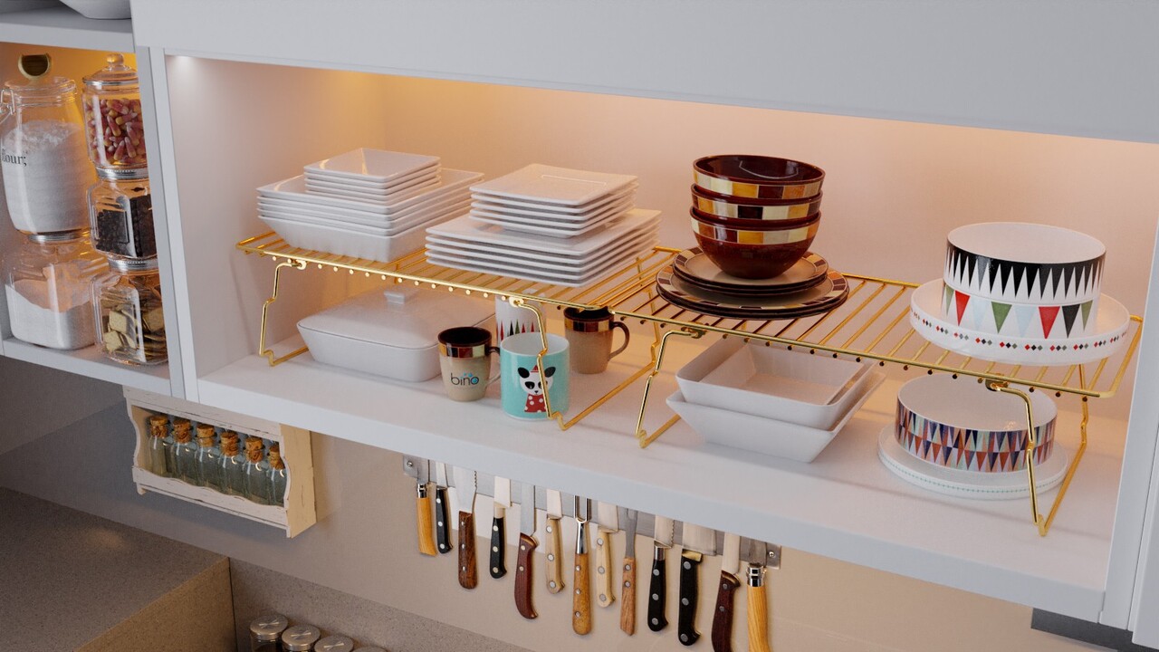 Raft de perete, Cerritos, Dolap Ici Organizer, 15x19x42 cm, Metal, Auriu/Maro