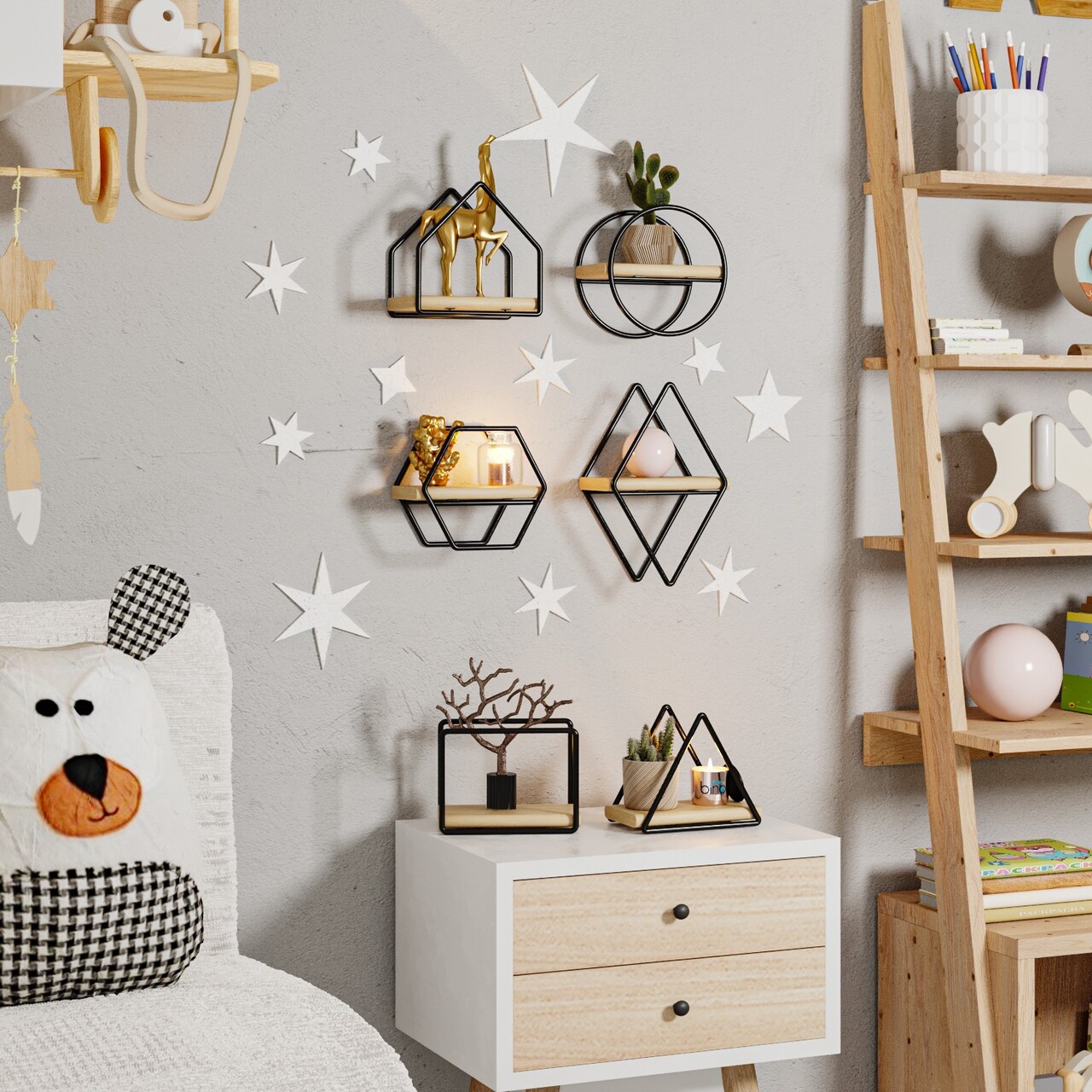 Raft de perete, Cerritos, Minyatür Raflar 6'lı Set, Lemn masiv, Aur/Negru