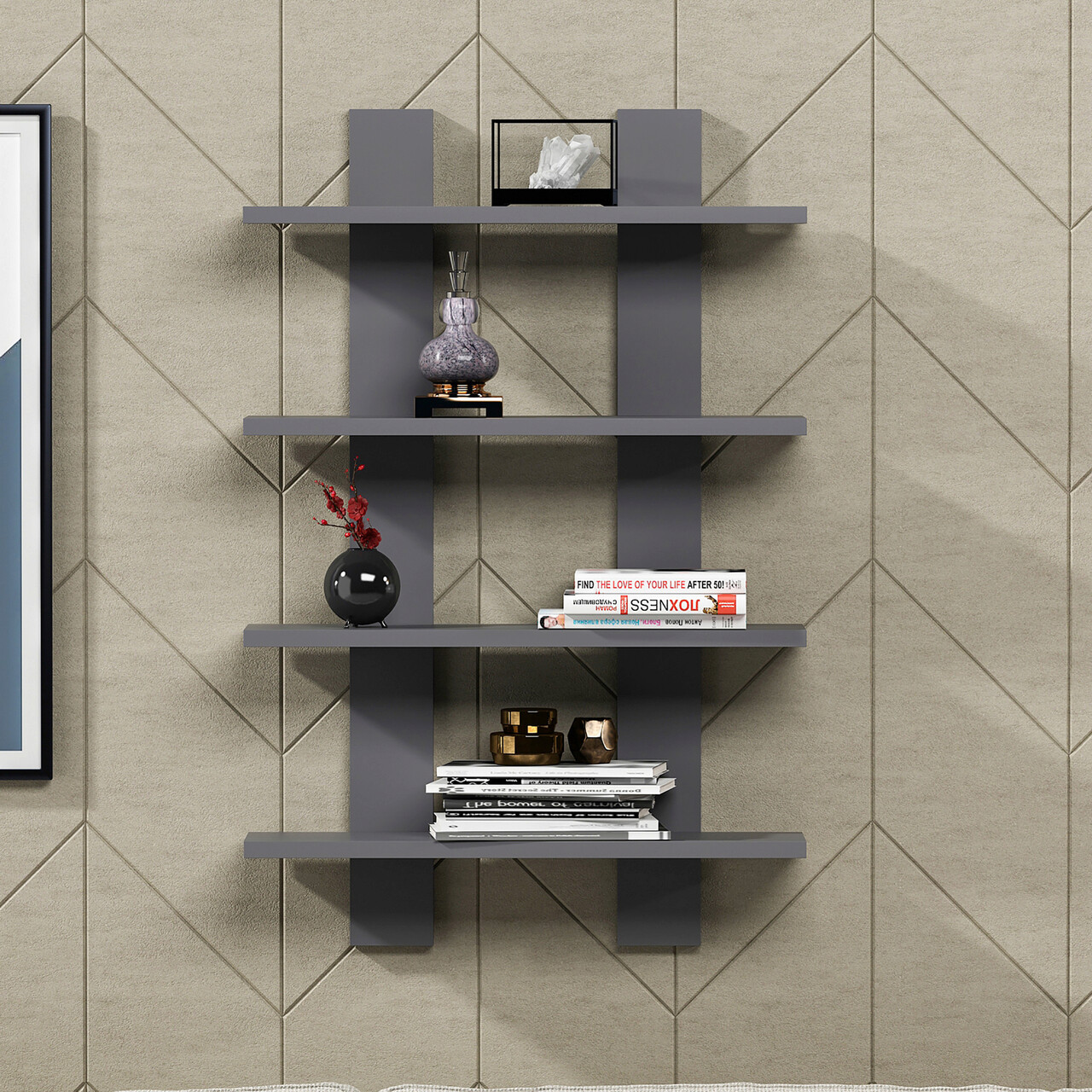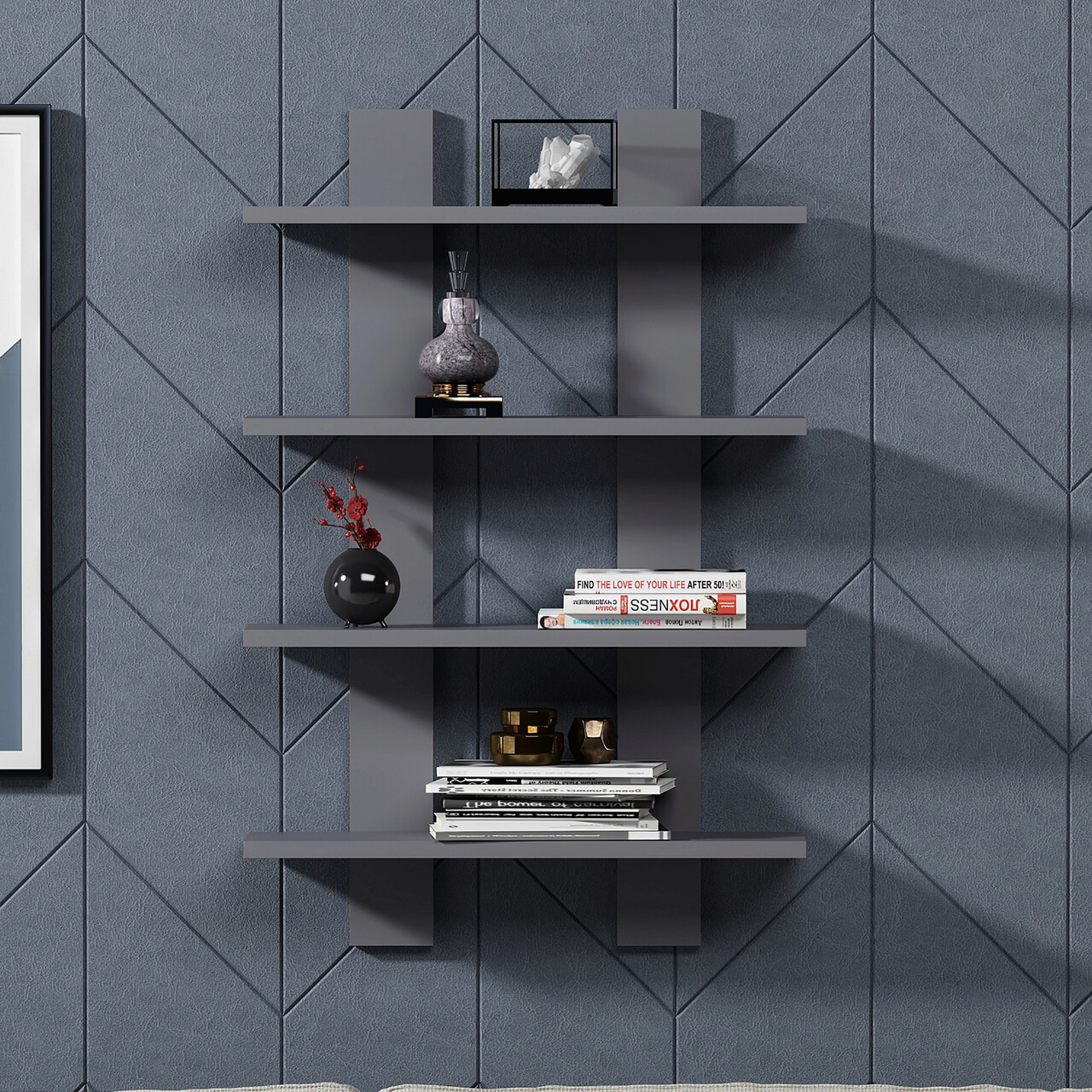 Raft de perete, Colman, Laurel, 59.6x16.4x90 cm, Antracit