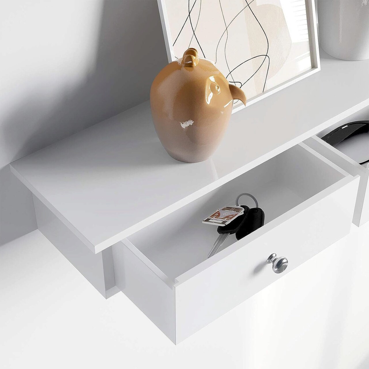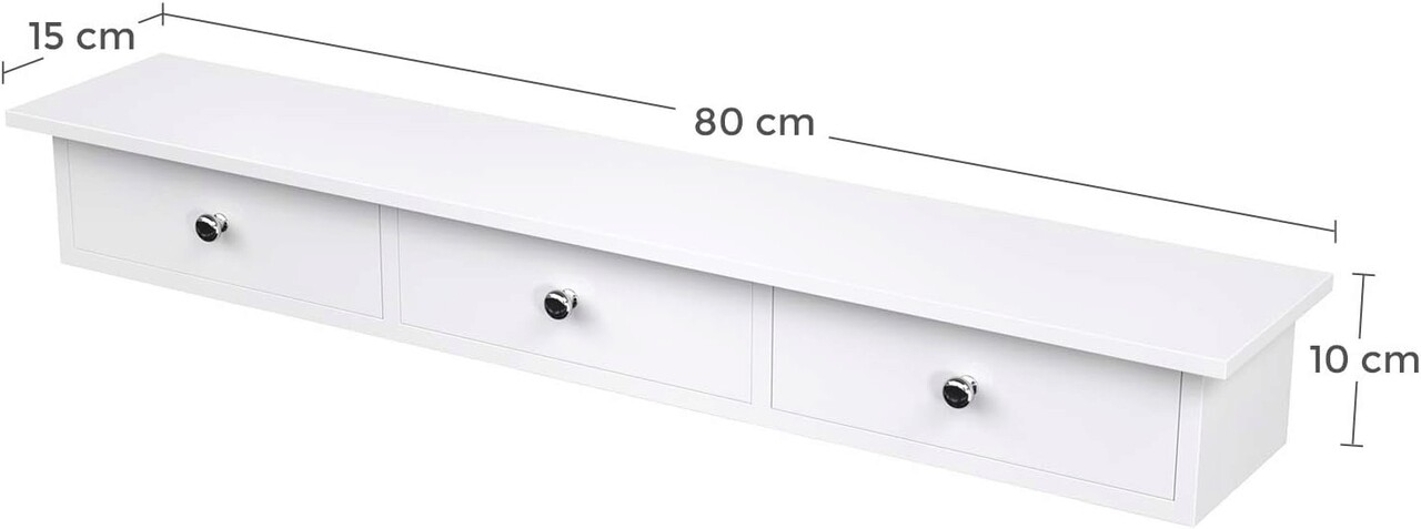 Raft de perete cu 3 sertare, Songmics, 80 x 15 x 10 cm, MDF, alb
