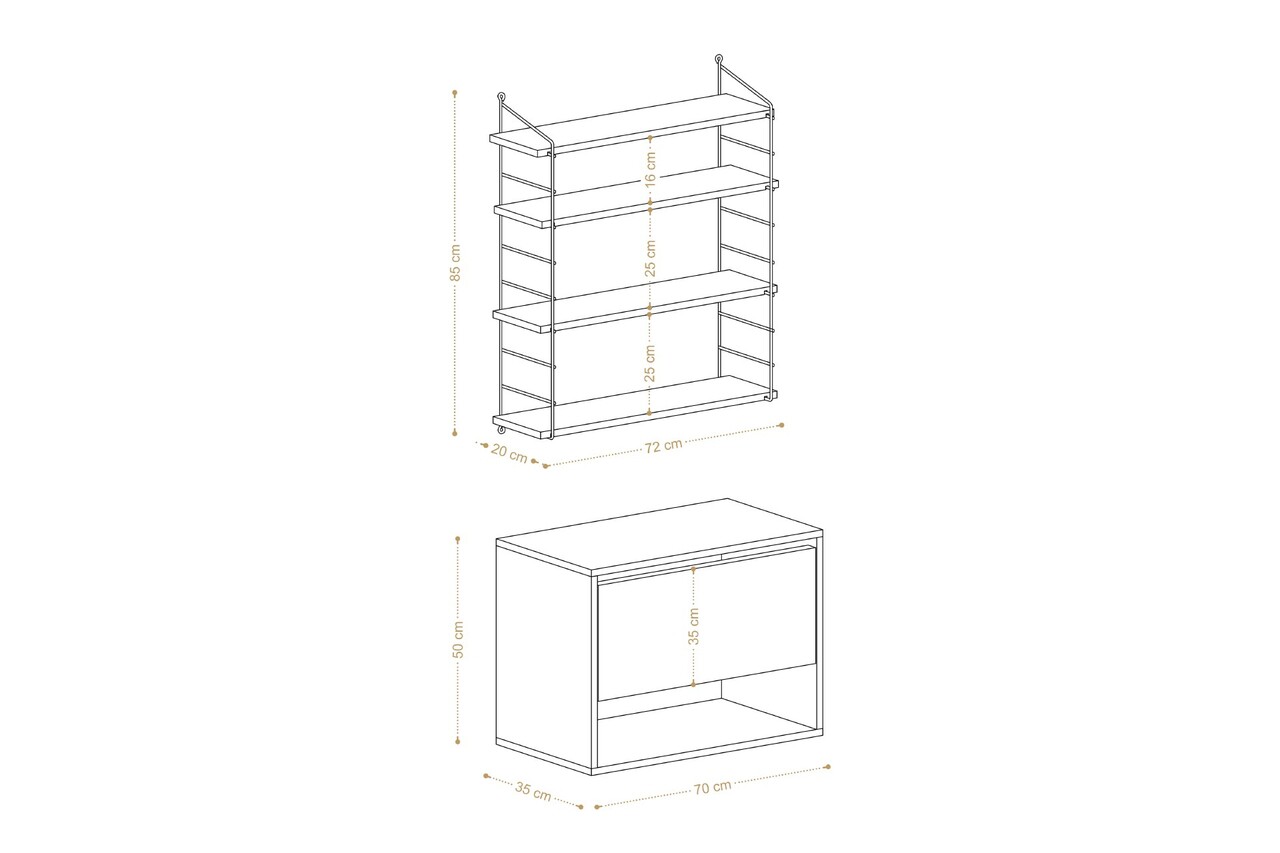 Dimensiunea raftului: Latime: 72 cm Inaltime: 85 cm Adancime: 20 cm (1 piesa)