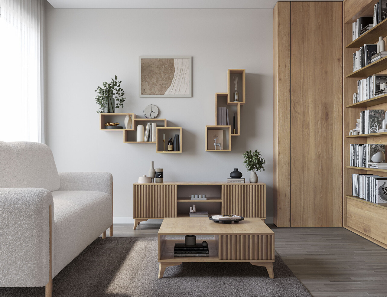 Raft de perete ELTAP, Alitty, 96x25x46 cm, PAL/PVC, stejar