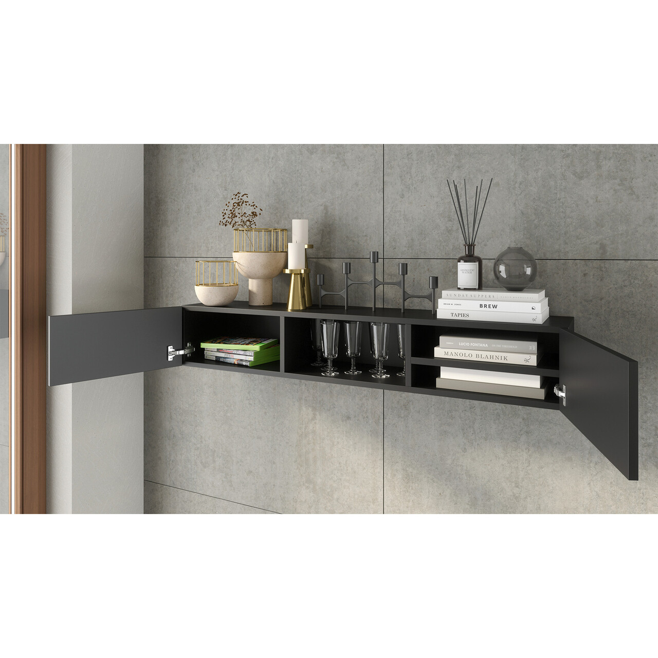 Raft de perete ELTAP, Lanzzi, 120x25x20 cm, MDF laminat, negru/auriu