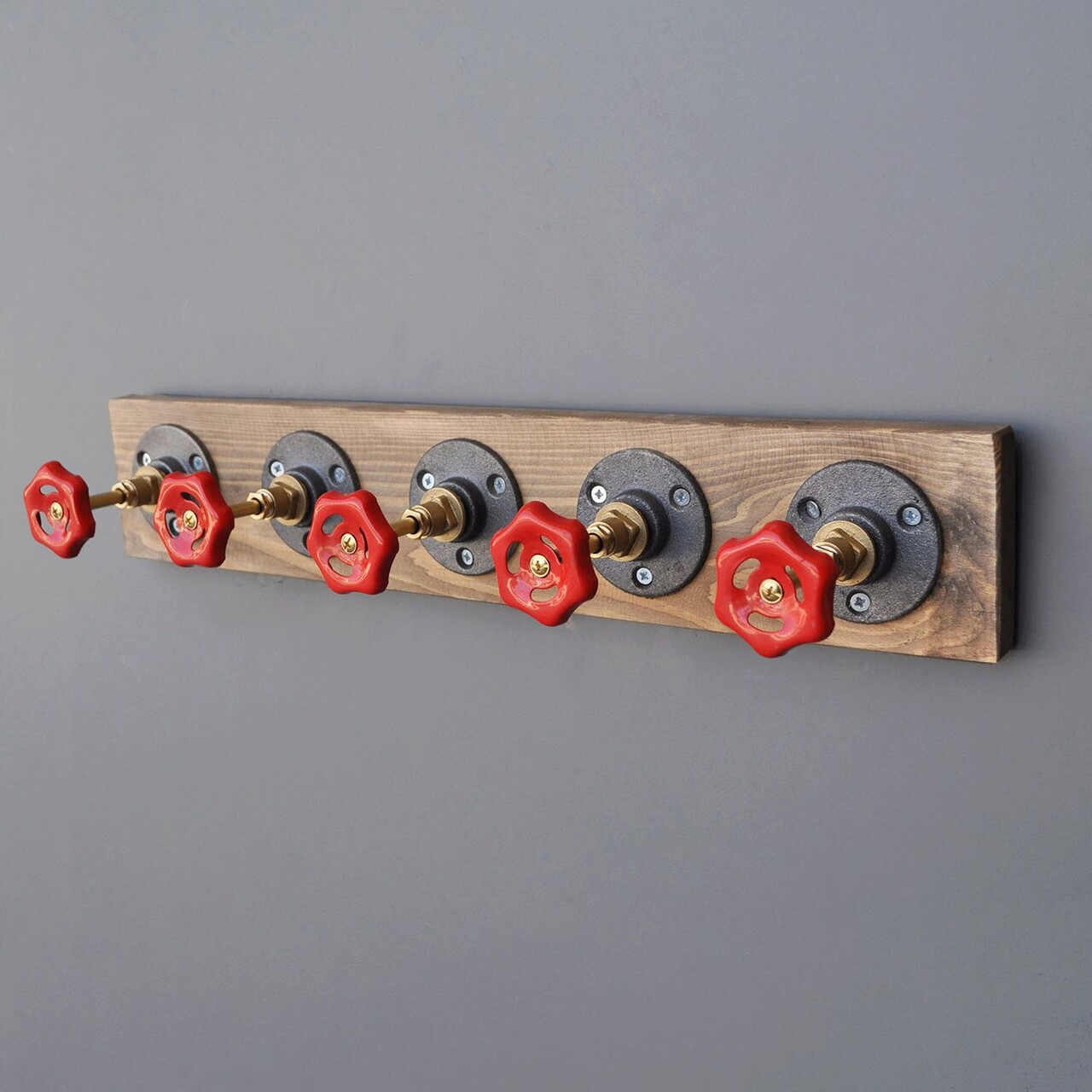 Raft de perete, Evila Originals, Boruraf085, 50x11x9 cm, Lemn, Nuc / Negru / Roșu