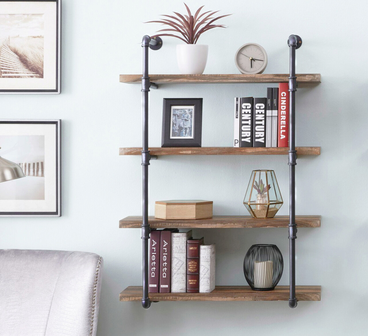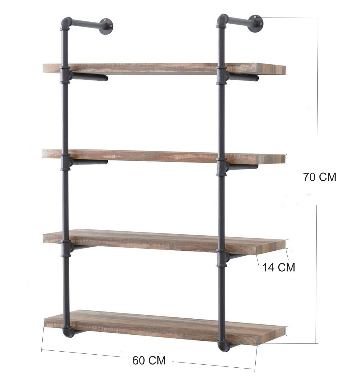 Raft de perete, Evila Originals, Boruraf106, 60x70x14 cm, Lemn, Nuc / Negru