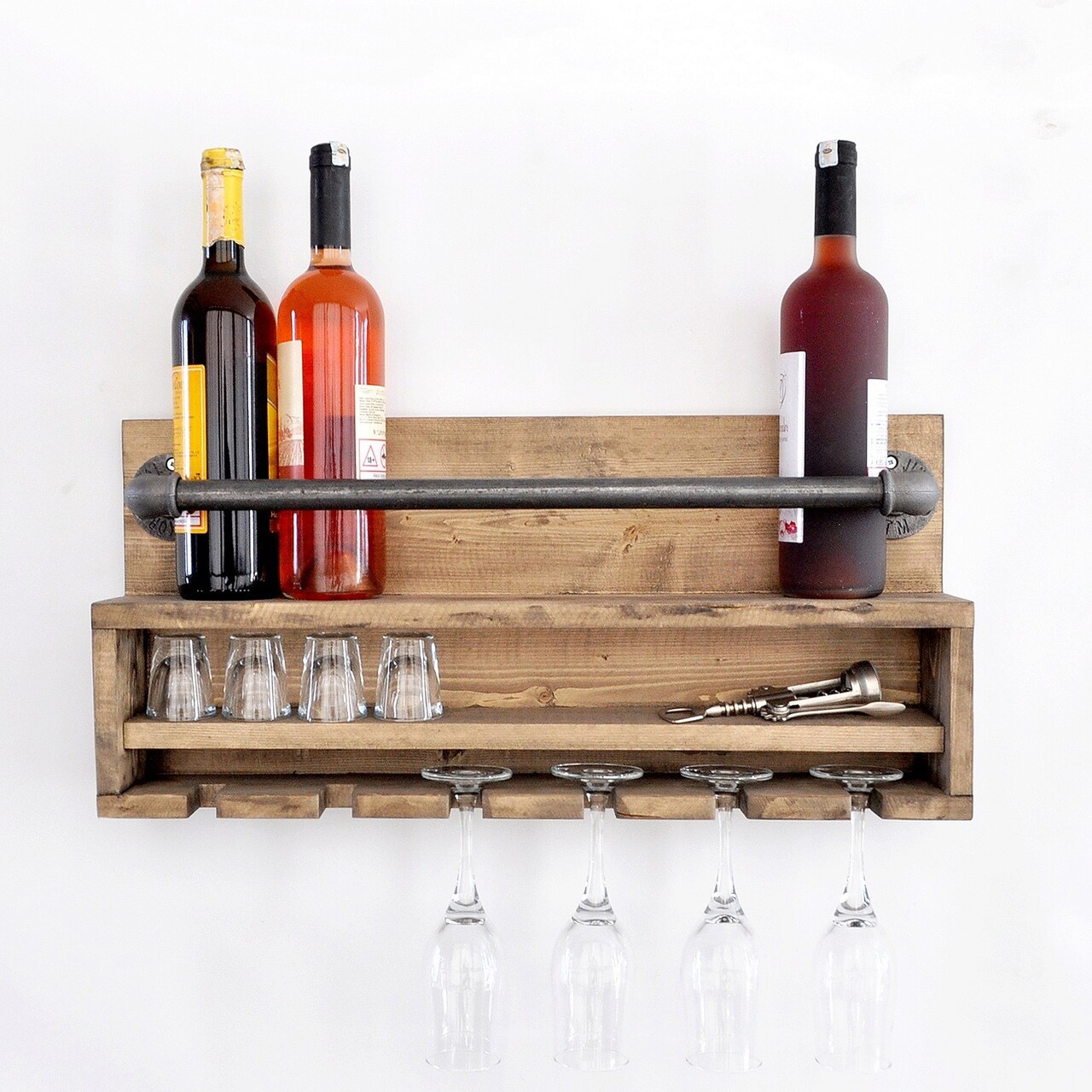 Raft de perete, Evila Originals, Boruraf216, 60x28x11 cm, Lemn, Nuc / Negru