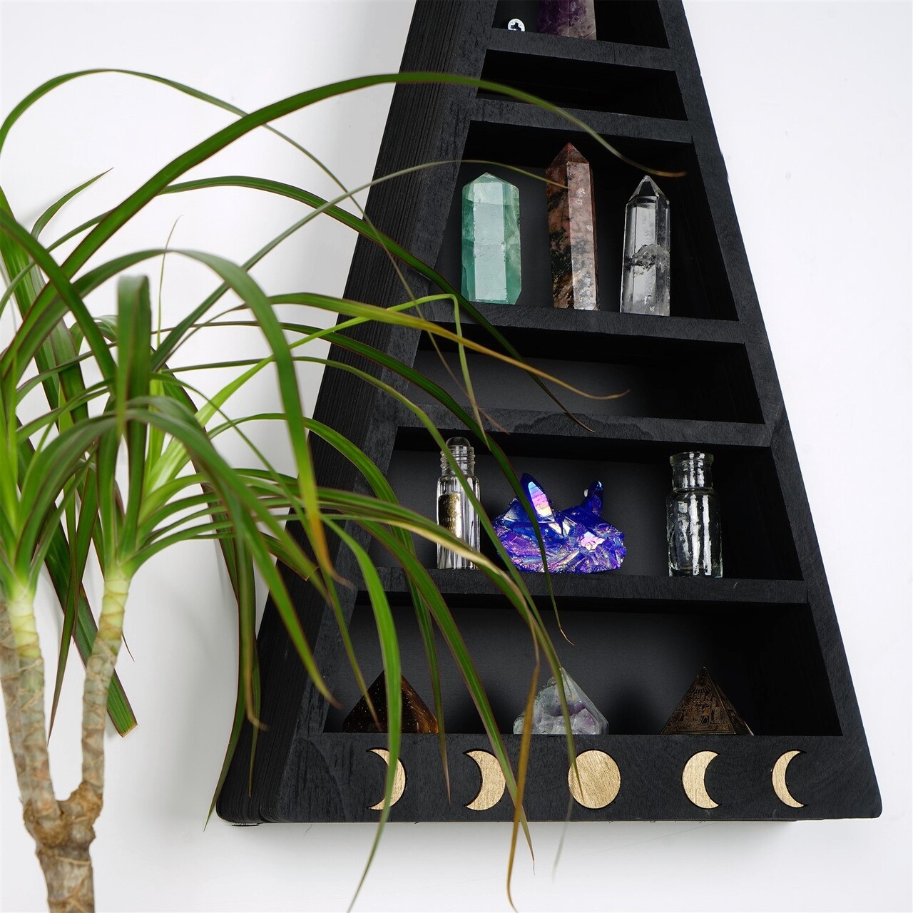 Raft de perete, Evila Originals, Cry002-S, 26x50x6 cm, Lemn masiv, Negru