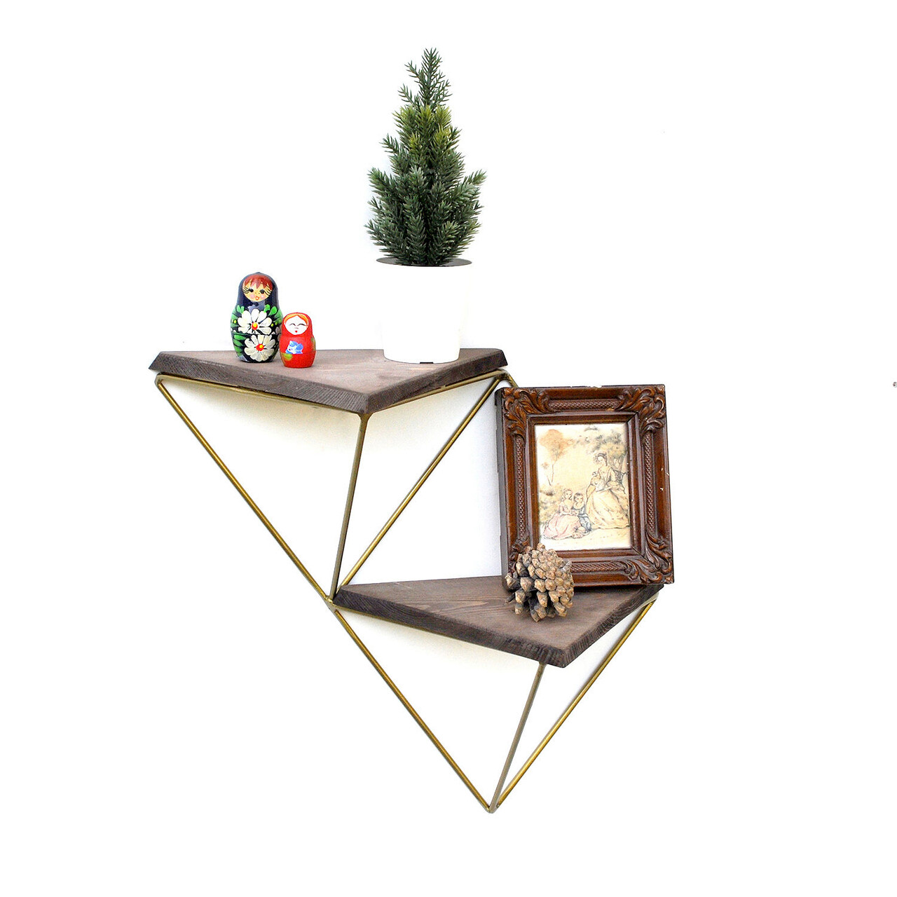 Raft de perete, Evila Originals, Wr075, Lemn masiv, Nuc / Aur
