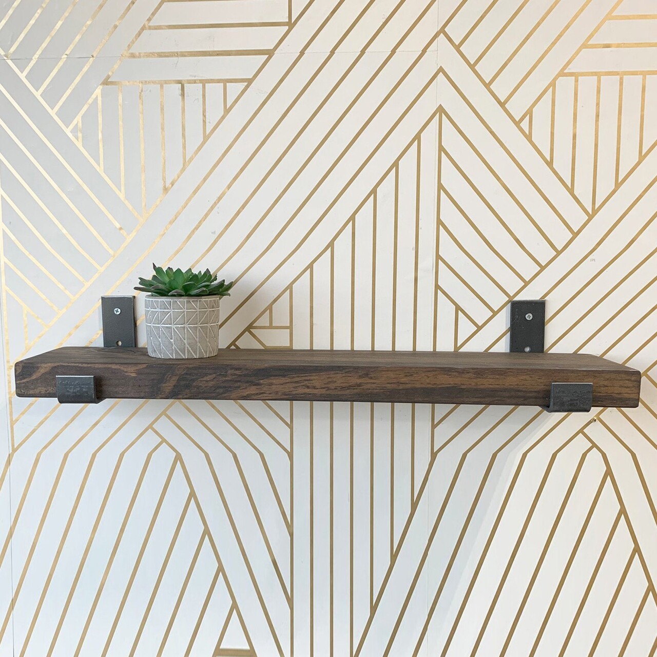 Raft de perete LAM007, Evila Originals, 40x14x16 cm, lemn de molid, maro/negru